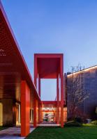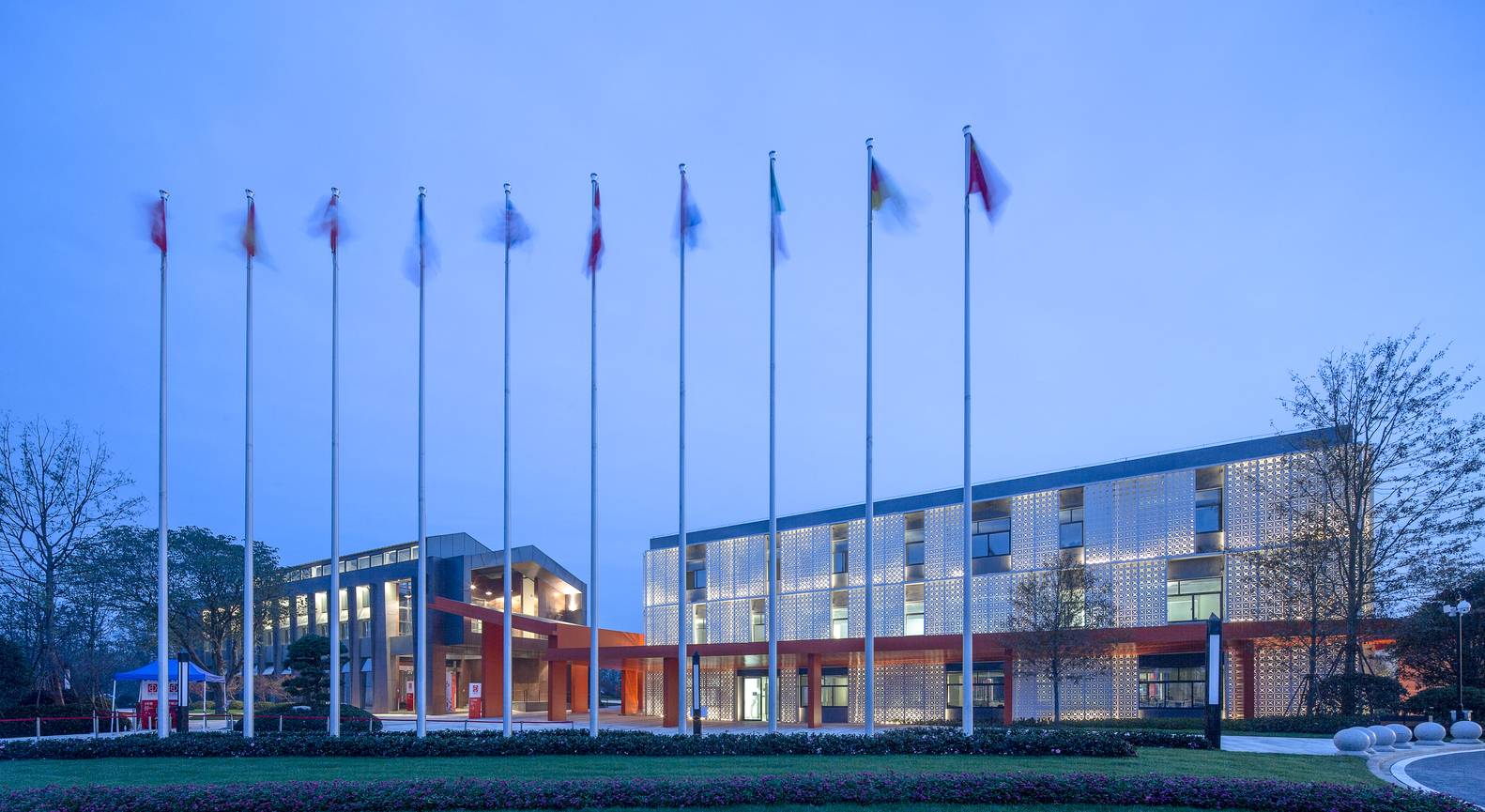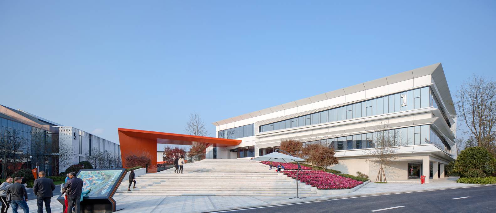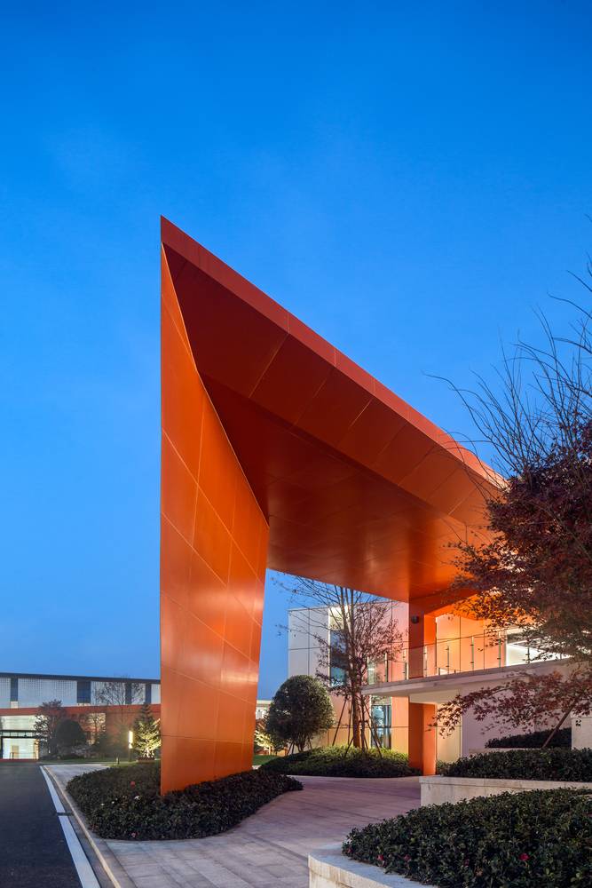 項目作為世界設計大會的永久會址,是工業(yè)設計重要的國際交流平臺。通過貫穿整個片區(qū)的風雨連廊的設計,寓意工業(yè)設計的整合,國際交流的紐帶,實現(xiàn)對人流的引導。而鮮明的橙色線條,與園區(qū)大面積立面元素相呼應,則為整個園區(qū)注入了活力。