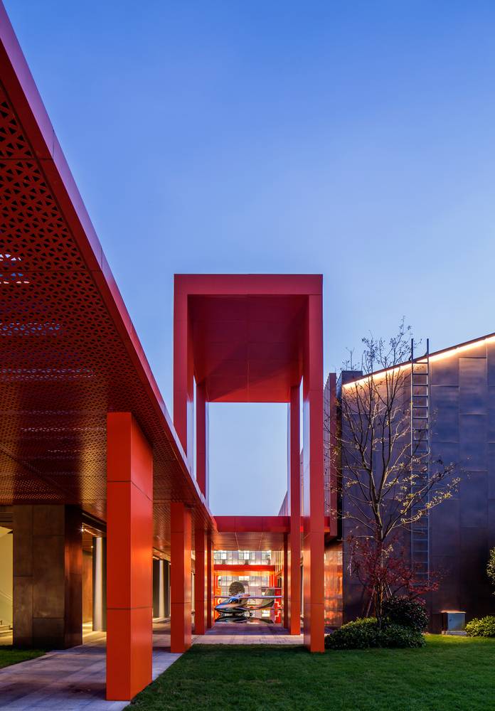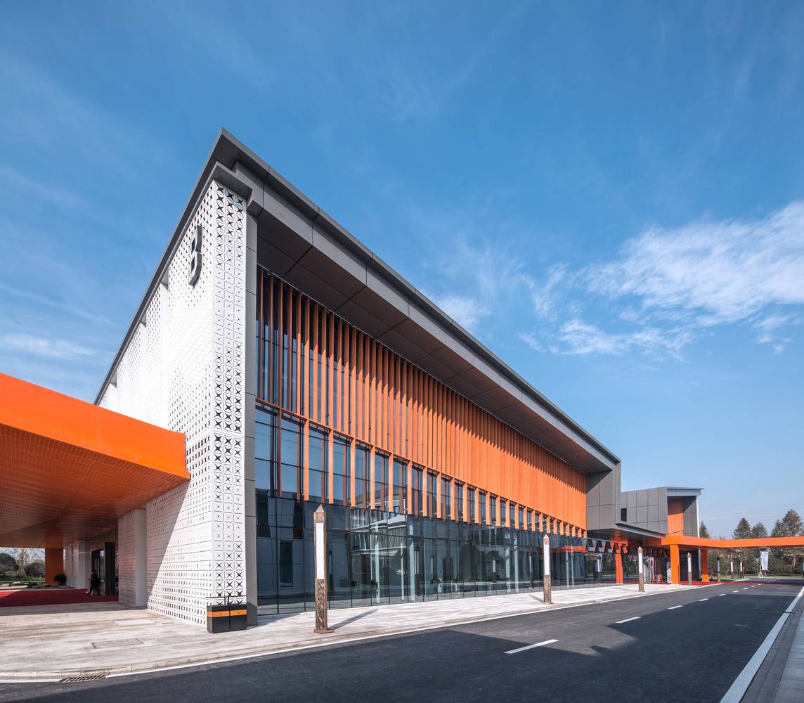 面對建機場改造項目,設計師并非修舊如舊,而是選擇通過工業(yè)設計的手段來解決世界工業(yè)大會會址的實用需求。所有人對這里的第一印象必然逃不開工業(yè)二字。極富質(zhì)感的表皮與肌理,鮮明的色彩沖擊,現(xiàn)代化的立面表達……一切元素與其作為世界工業(yè)設計大會永久會址的實用功能與設計初衷相得益彰。