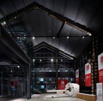 設計師對1#樓進行原址上的拆后重建,主要負擔展廳和變配電所、消控監(jiān)控室等功能需求。使用同樣改造手法的是5#樓,該樓作為報告大廳所在的重要場所,集聚了展廳和咖啡吧等一系列可能參觀休閑的實用場所。