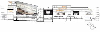 進入建筑后是兩個通往更高一層的寬樓梯,部分可以當做座位使用,作為文化舞臺(Cultural Stage)的中心景觀。這里還可作為大禮堂的前廳,提供餐飲和吧臺,還可以用作展覽和活動空間。新設(shè)計方案中的一個關(guān)鍵點是要同步一系列的設(shè)計:翻新交響樂演奏廳,提供最佳聲學(xué)和空間體驗;將多功能卡爾奧爾夫禮堂設(shè)計成音樂廳內(nèi)最靈活的空間;圖書館設(shè)計成開放式閱讀學(xué)習(xí)空間;繼續(xù)教育中心,包括信息咨詢區(qū),則沿文化舞臺布置。最后,交響樂演奏廳上方的Ausblick(遠眺)餐廳處于音樂廳的最高處,為客人提供多角度景觀,從慕尼黑安聯(lián)球場(Allianz Arena)到瑪麗恩教堂(Frauenkirche),再到楚格峰(Zugspitze)。