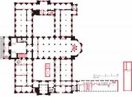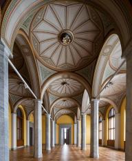 建筑師將中庭的地面升高了175厘米,以達到兩個目的:其一,中庭下方為深入地下的大型設備間預留了空間。其二,將中庭與建筑的其他公共空間結合起來。這些公共空間和博物館中間被稱作教堂的部分聯(lián)結在一起形成了一個毗連的宏偉空間。為此,教堂的地面降低了44厘米,1961年地面升高89厘米時被壓縮的教堂空間也得以重現(xiàn)。我們還在一些富麗堂皇的空間里增設了餐廳、咖啡廳和酒吧,這些空間之前基本都是藝術品修復室。工作區(qū)整體大換位,這樣,博物館地面層可以融入城市生活,成為其中一部分。人們不需花錢買門票,就能在這兒會面,喝咖啡,讀書,或者只是靜靜享受時光。改造后的入口長廊也更方便人們進入——經過改造,入口長廊的室外空間部分已經恢復使用,并且因為長廊的地面和相鄰的室內空間的地面齊平,所以每個人都能從主入口經過入口長廊進入博物館。