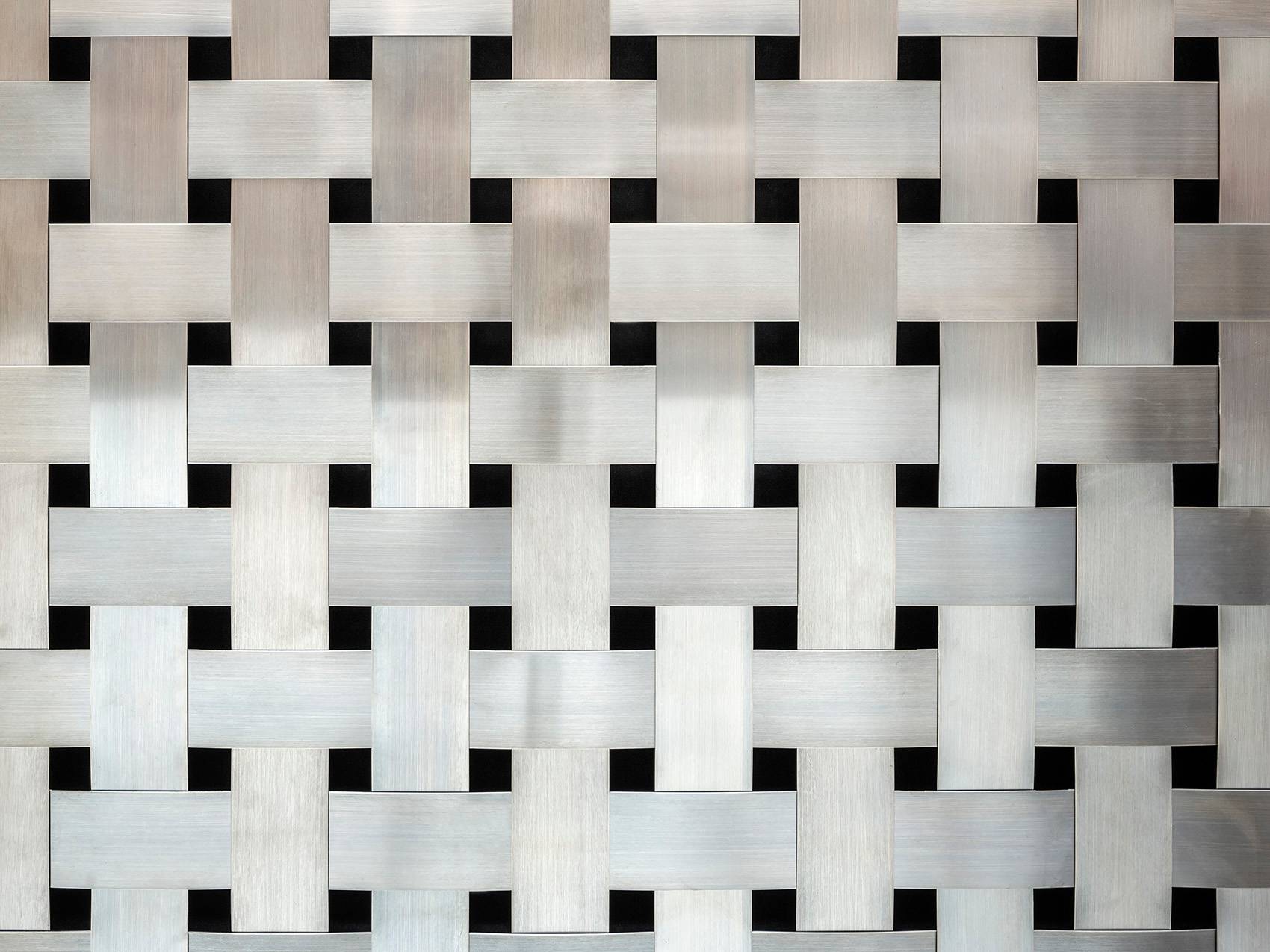 ▼中庭的電梯井被銅制編織條紋的“殼”所包裹