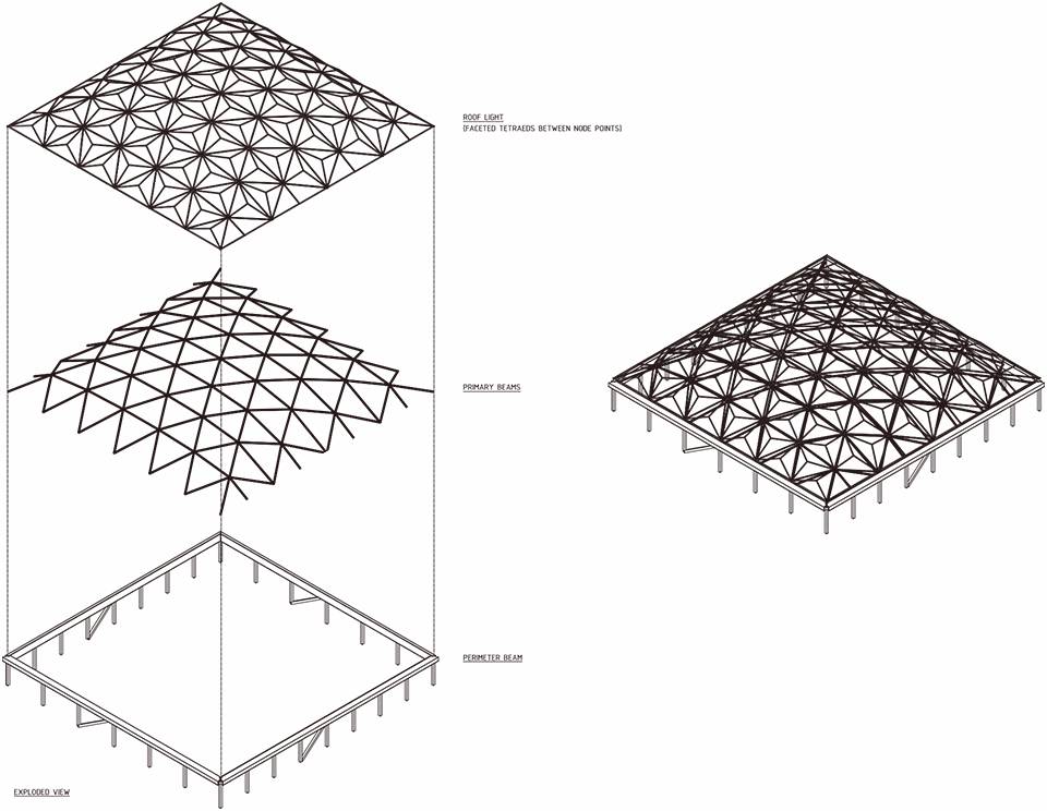 ▼中庭的玻璃屋頂是由一個個小的錐形結構組成的