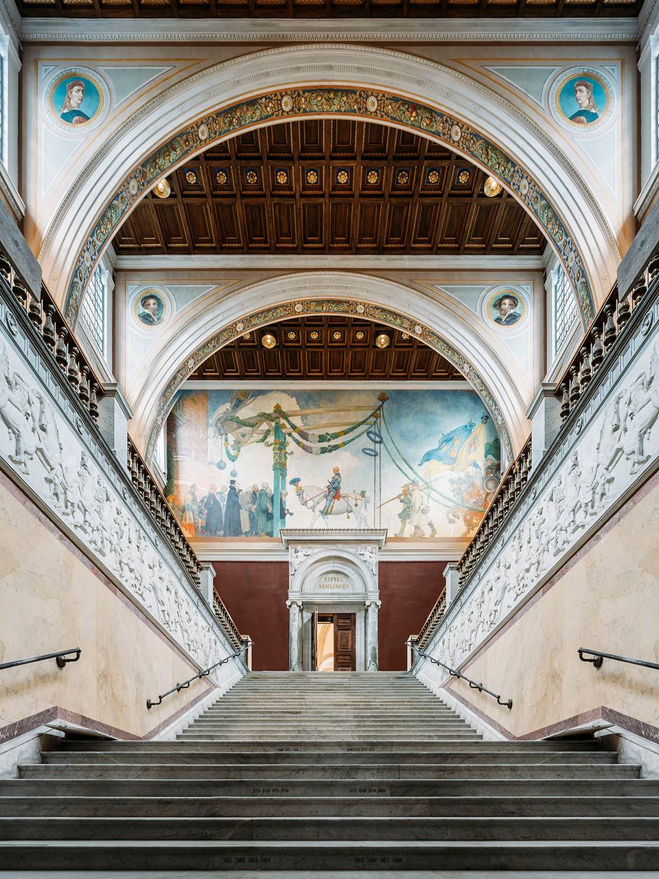 國家博物館的改造,大部分都是基于原建筑師Friedrich August Stüler的設計。我們的工作則是確保改造設計滿足新技術與操作的要求,同時保留建筑的特質。最開始在設計國家博物館時,是打算做成多功能博物館的,但是隨著時間的推移,逐漸妥協(xié)于現(xiàn)實,這個想法不了了之。到二十世紀末期,建筑已經嚴重損壞,平面布局非常隨便。根據國際需求,博物館需要為藝術品提供更安全穩(wěn)定的環(huán)境和條件,因此改造博物館成為了當務之急。