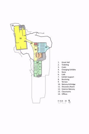 外露的屋頂橫梁和灰色的頂板在天花板上形成漩渦狀的煙霧狀圖案。展覽遍布在整個(gè)大堂空間,為兒童而設(shè)置的動(dòng)手探索房間以及可以俯瞰濕地景觀的咖啡館布景,為人們?cè)诼猛菊褂[之間提供更多的活動(dòng)與交流。這種設(shè)計(jì)沒有依附并順從郊區(qū)蔓延的不足。而是定義了環(huán)境的獨(dú)特性,在人與場(chǎng)所之間建立了情感聯(lián)系,并使市郊成為一個(gè)壯麗,獨(dú)特且可持續(xù)的社區(qū)環(huán)境。