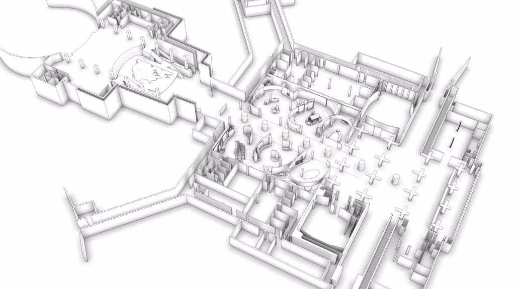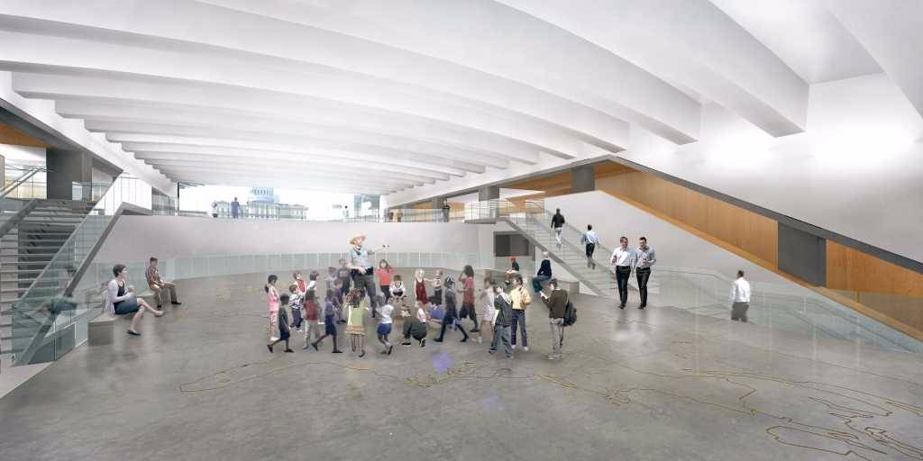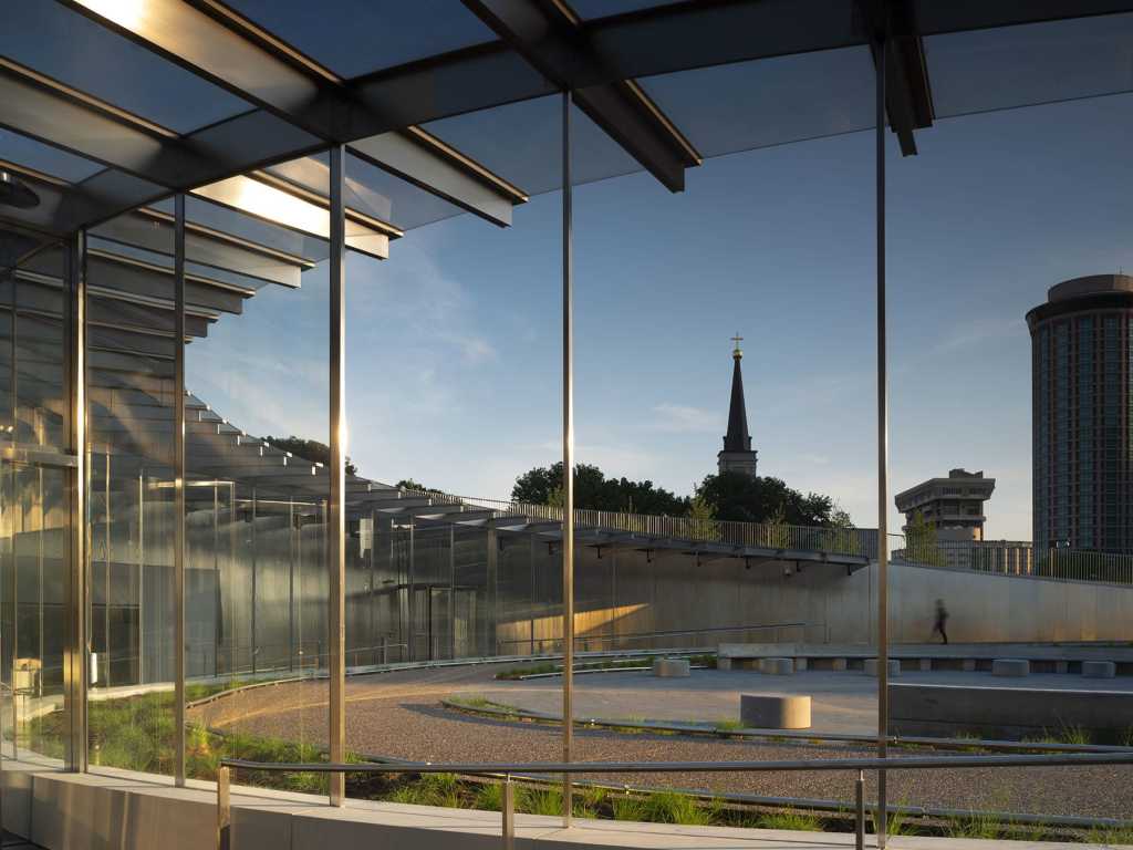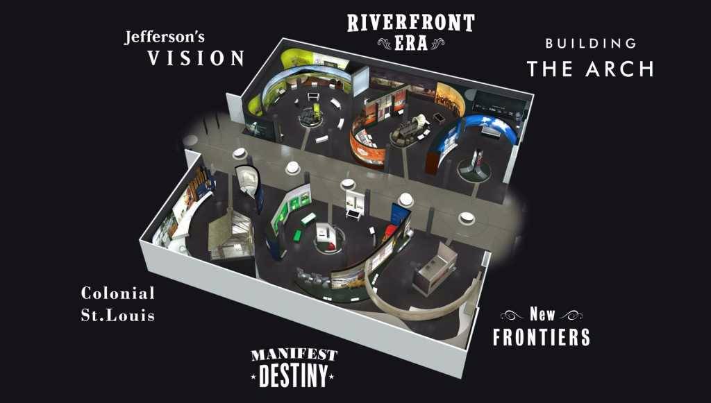 新博物館占用了一處翻修過的地下空間,該空間與拱門同時修建,向西擴(kuò)展了47000平方英尺(約合42000平方米),并有一個面向舊法院的新入口,這是1857年審判奴隸德雷德·斯科特的標(biāo)志性地點。現(xiàn)有空間的大部分內(nèi)部已被拆除,并重新配置成新的畫廊、公共設(shè)施和博物館工作人員辦公室。現(xiàn)有公共空間的原始建筑元素被保留下來,其獨特性通過新的照明和其他獨立的干預(yù)措施得以突出。新增的公共大廳也作為整個公園的游客中心,以及一個帶有紀(jì)念性和動畫元素的大廳,向游客介紹在畫廊中將要探索的主題。