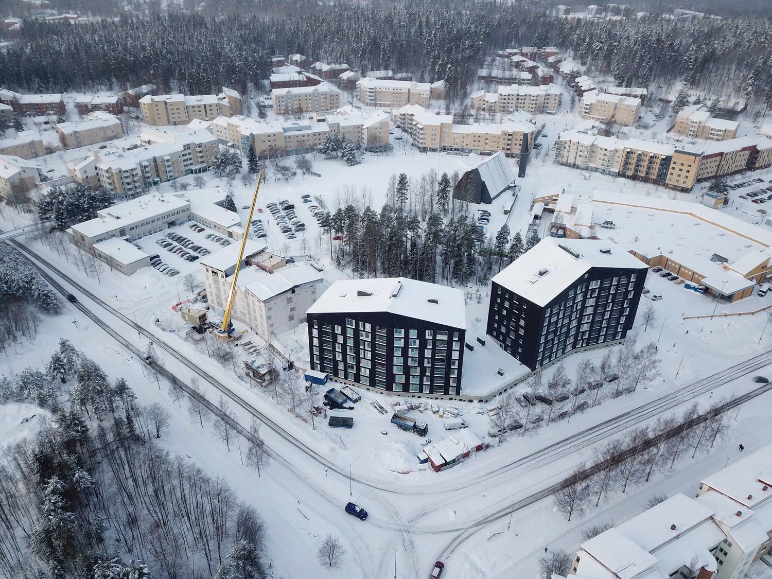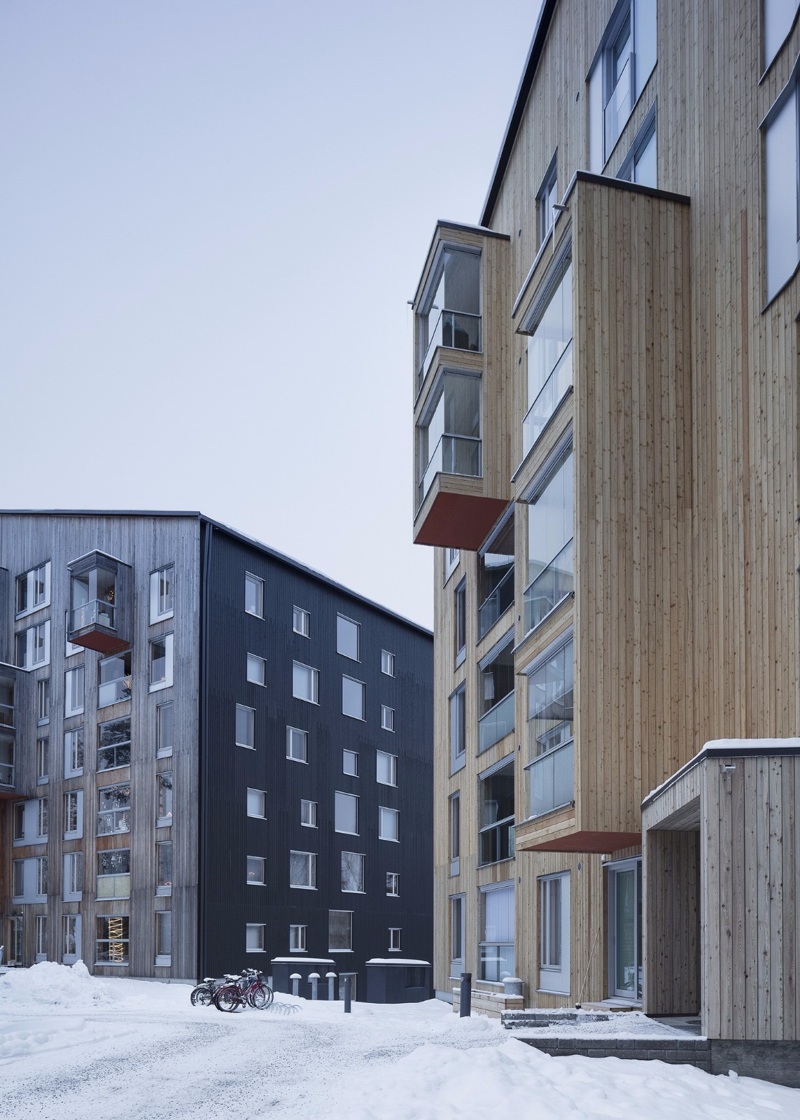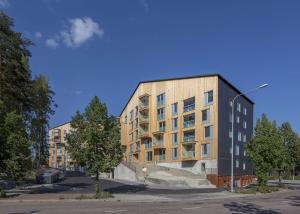 Puukuokka綜合公寓樓總共提供184戶住宅套房,可以滿足各個年齡段住戶的需求,不論是單身還是擁有好幾個小孩的家庭都可以找到合適的套型。Puukuokka一期工程是芬蘭境內(nèi)第一棟八層高的木質(zhì)公寓樓。該項(xiàng)目的二期工程于2017年竣工,三期工程于今年的8月份建成。