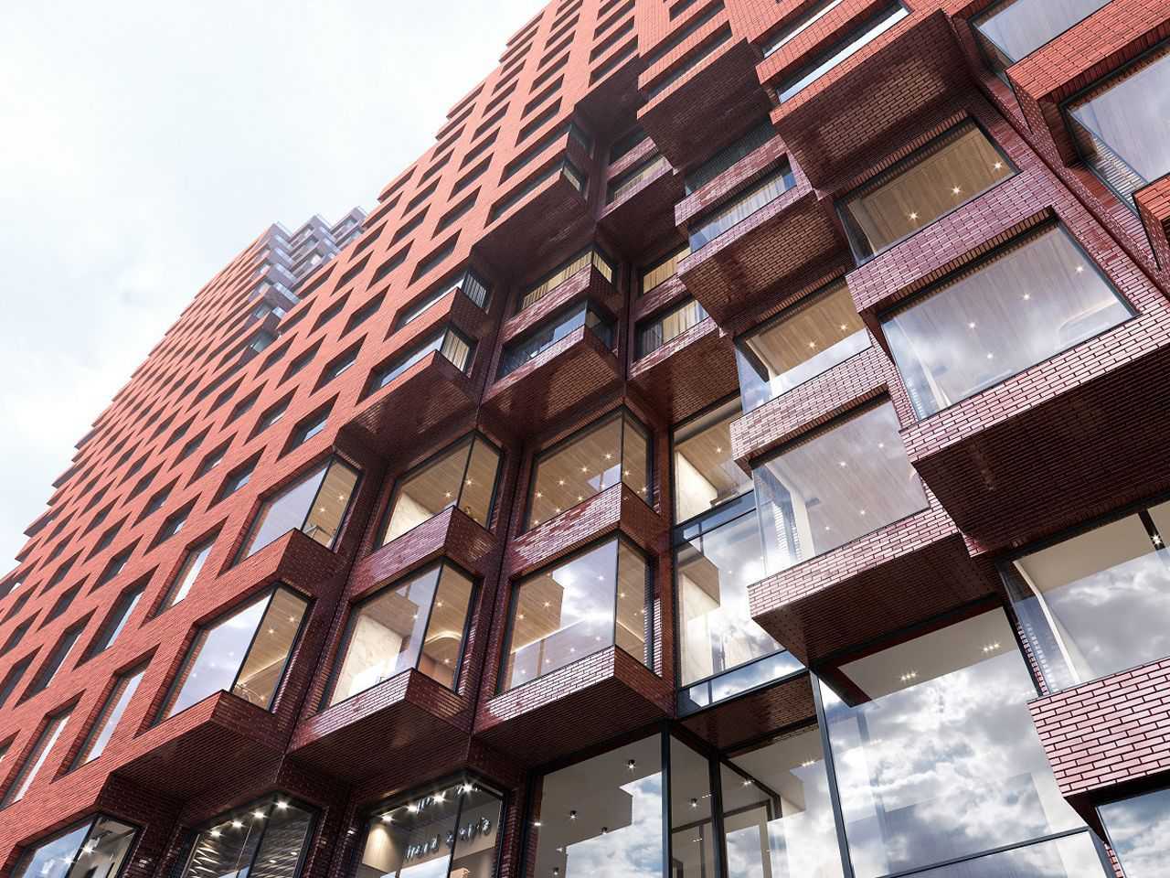 立面上的開窗根據(jù)不同房間的位置而設(shè)定了不同的大小,進(jìn)而形成了外部造型的紋理感。立面上采用的紅色瓷磚根據(jù)窗扇的尺寸做成漸變形式,與整個(gè)建筑體量形成對(duì)話關(guān)系。公寓樓上的獨(dú)特紅色不僅借鑒了周圍的構(gòu)建注意建筑形式,還為整個(gè)建筑奠定了溫暖、溫馨的生活氛圍。室內(nèi)空間的設(shè)計(jì)由兩家荷蘭設(shè)計(jì)公司Sabine Marcelis和i29 interior architects以及一家俄羅斯事務(wù)所Oleg Klodt 設(shè)計(jì)完成。