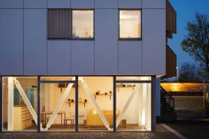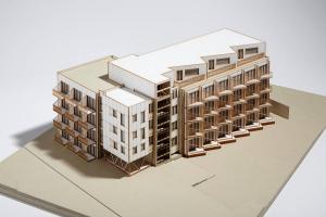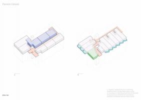 建筑一層設(shè)有八間單臥公寓和一間無臥公寓。二至四層設(shè)有九間單臥公寓和一間無臥公寓。五層包括三間兩臥公寓、一間備用臥室和公共屋頂露臺。