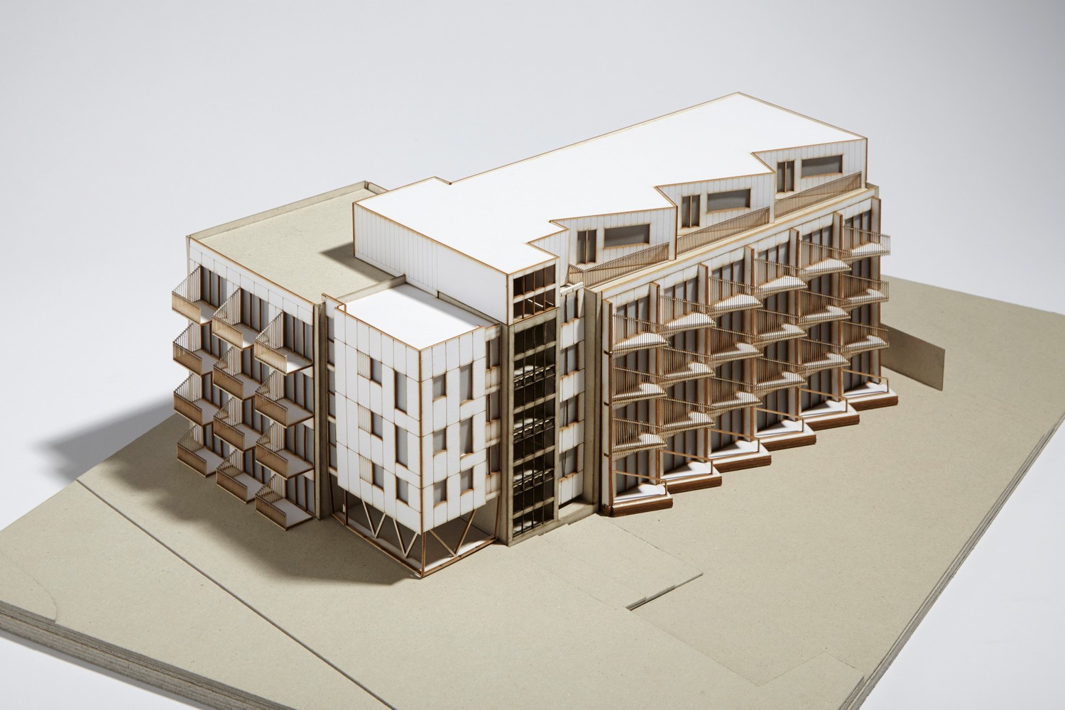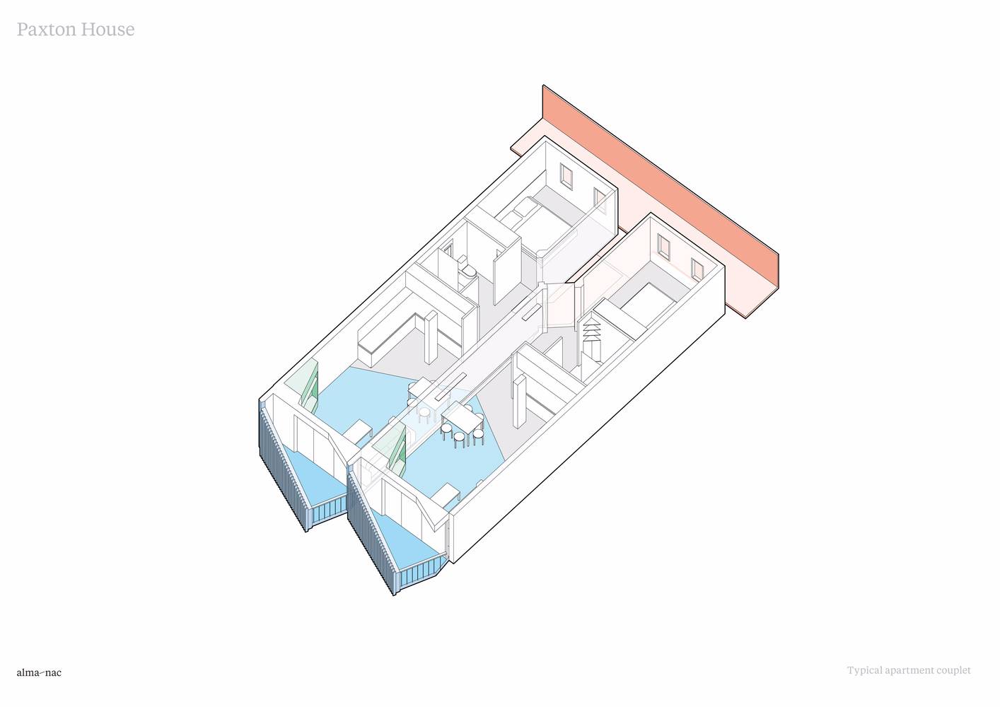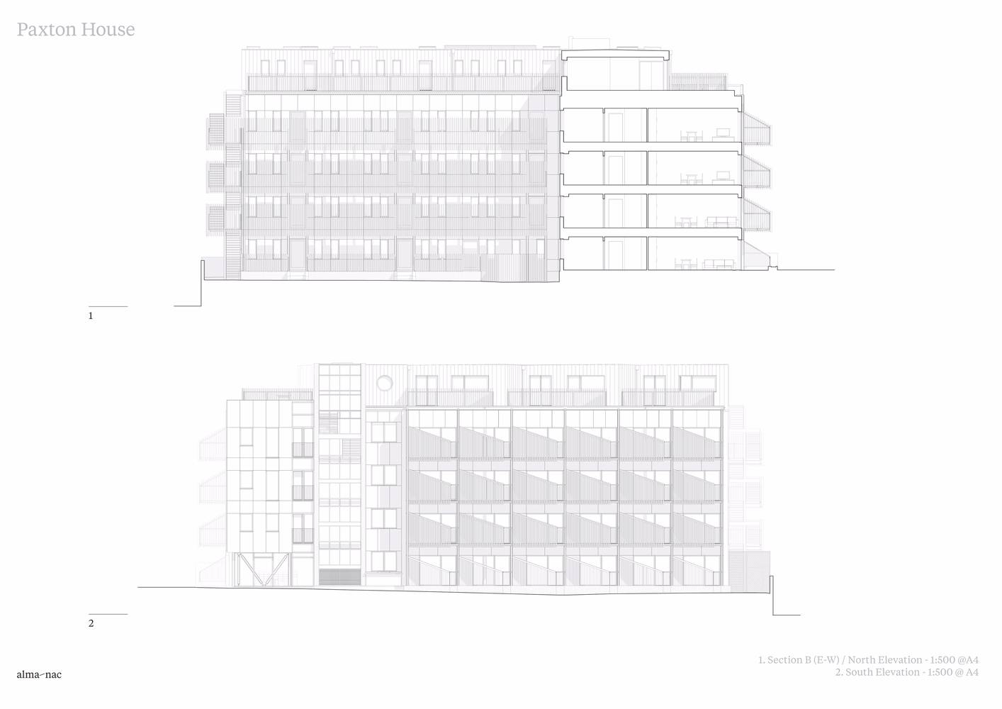 有角度的陽臺,以及將入戶交通從建筑中半抽離出來的設(shè)計(jì),消滅了完全北向的戶型,讓 Paxton 集合住宅中的每一間公寓都能享受到充足的陽光。