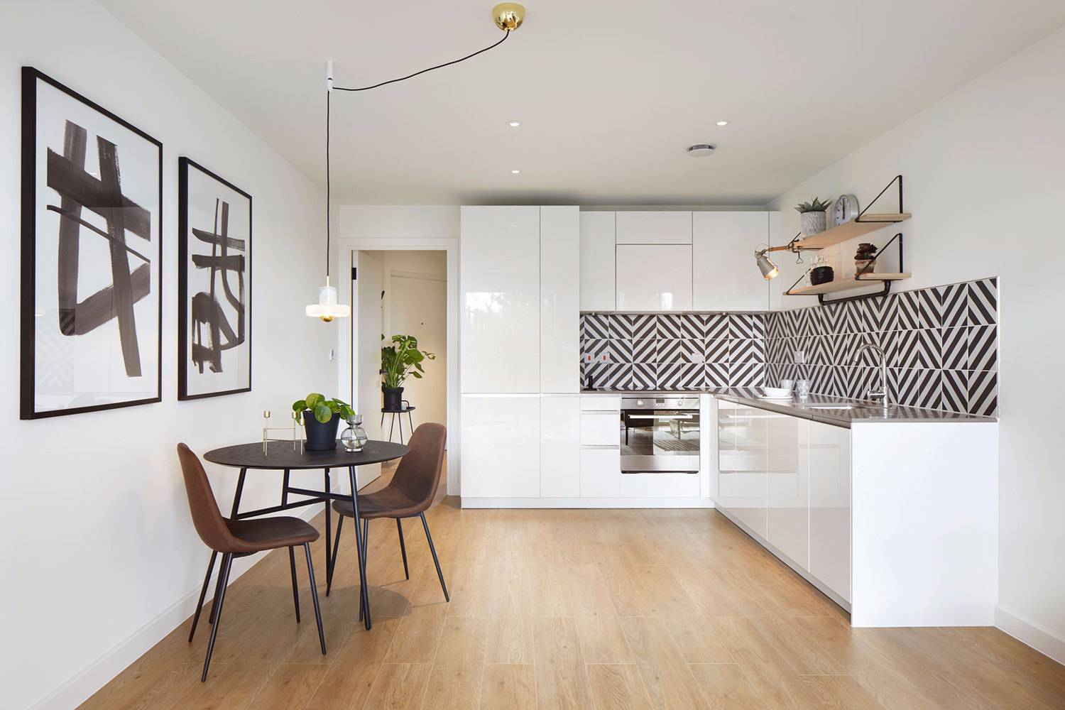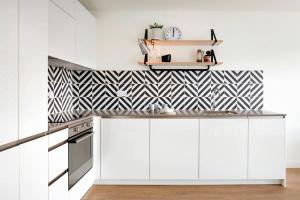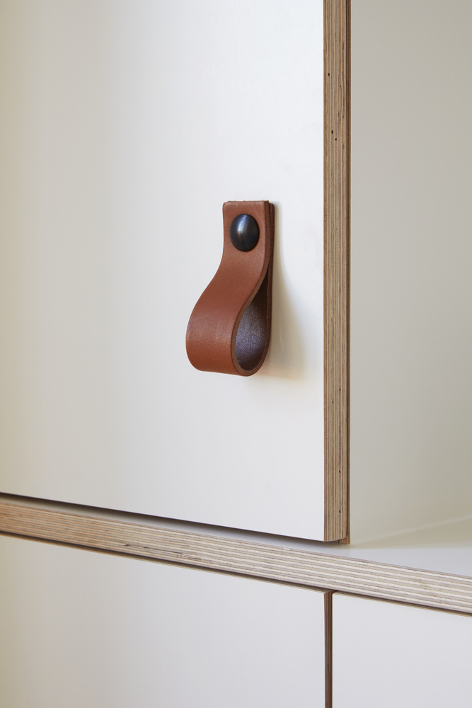 從平面布置上可以看出,公寓的主要起居空間都是沿著建筑南側(cè)布置的。為了增加住戶的私密度,設(shè)計(jì)師增設(shè)了一個(gè)有角度的陽臺,作為私密空間與外部街道的過渡。這個(gè)折角的陽臺,也為觀賞附近火車駛過的景致提供了更好的視角。陽臺使用的乙?;静目梢员WC更加持久的使用壽命。