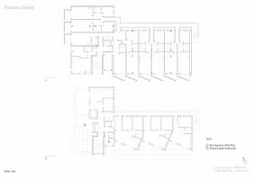 alma-nac 總監(jiān) Caspar Rodgers 說:“如果保持原有建筑的出入口設(shè)置和交通組織不變的話,設(shè)計(jì)會采用傳統(tǒng)的中間走廊兩側(cè)公寓的布局形式。但是這樣不可避免地會出現(xiàn)單朝向的北向戶型。我們嘗試了各種方案,希望讓每一間公寓都能有雙朝向。最終,我們選擇了在北向?qū)⒆叩缽慕ㄖ黧w中剝離出來的方式實(shí)現(xiàn)了這一目標(biāo)。走道距公寓的北向房間有一定的距離,并且進(jìn)行了減震設(shè)計(jì),最大限度地減少對于住戶的影響。這樣的交通系統(tǒng)設(shè)計(jì)也讓流線更加明確。主要的公共服務(wù)設(shè)施集中在交通核心筒的周圍,將分屬各戶的私人區(qū)域和住戶共享的公共區(qū)域分離開來。”