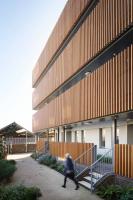 為了最大限度地減少外部入戶走道對住戶的影響,建筑師精確考量了走道的位置和尺度,并從照明和聲學(xué)等方面進(jìn)行了精細(xì)化設(shè)計(jì)。