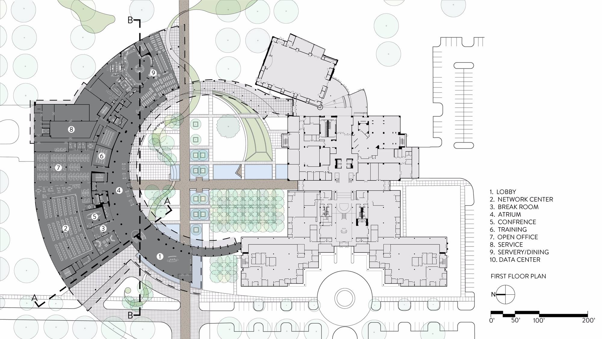 沃爾特體育中心共四層,形態(tài)輕盈,為500多名學(xué)生運(yùn)動(dòng)員提供學(xué)術(shù)研究和專(zhuān)業(yè)發(fā)展幫助服務(wù),設(shè)置了一個(gè)營(yíng)養(yǎng)中心和餐飲設(shè)施,兩個(gè)體育表演中心,一個(gè)尖端的運(yùn)動(dòng)醫(yī)學(xué)和運(yùn)動(dòng)訓(xùn)練中心,八個(gè)校隊(duì)的更衣室,以及教練和管理人員的辦公空間。這是珀金斯威爾主持設(shè)計(jì)的第二座西北大學(xué)已開(kāi)放的體育設(shè)施,同年4月,該校慶祝瑞安·菲爾德豪斯體育中心的盛大開(kāi)放,玻璃、鋁和石灰石砌筑的建筑緊鄰沃爾特體育中心,在一個(gè)高聳的拱頂下,為橄欖球、曲棍球、足球和其他校隊(duì)運(yùn)動(dòng)員提供全年練習(xí)和訓(xùn)練場(chǎng)地,也是校園活動(dòng)的娛樂(lè)和活動(dòng)場(chǎng)所。