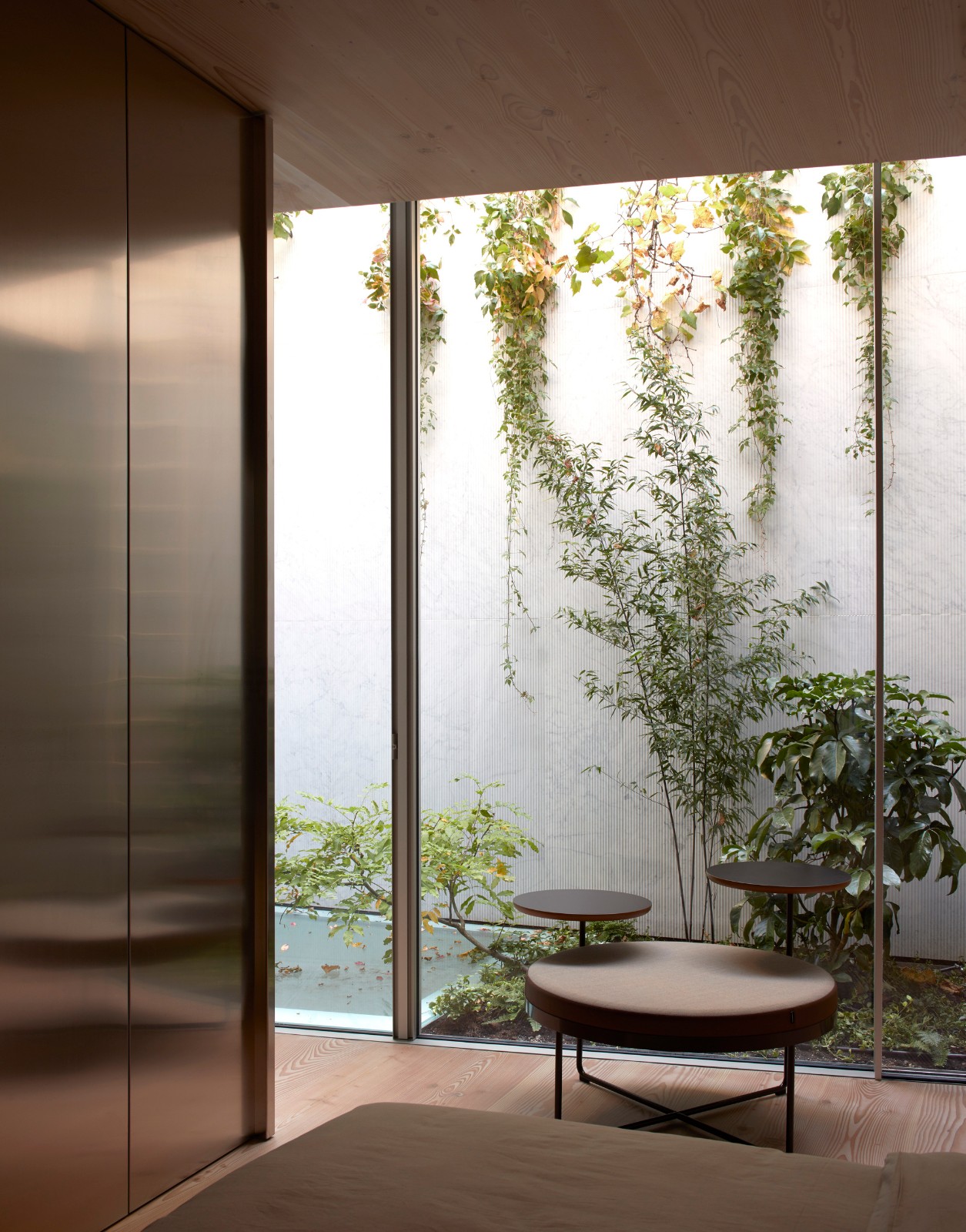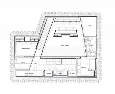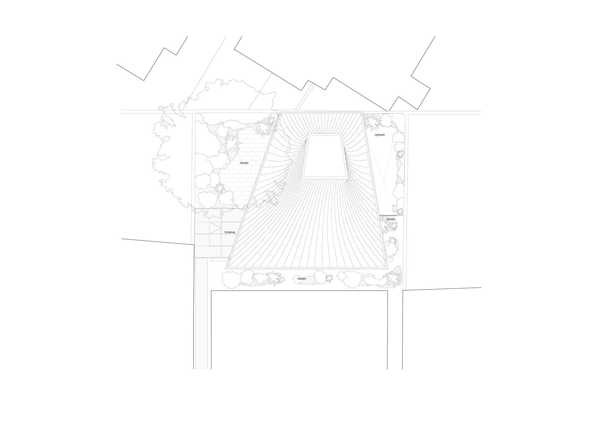 將日光引入長達(dá)8米的深度是一項挑戰(zhàn),尤其附近房屋的位置很緊湊,并且面朝北向。數(shù)字分析工具被用于尋找光在創(chuàng)造建筑物的形式和建筑組織設(shè)計方面提供了三維功能?;▓@中的房子建立在建筑事務(wù)所的長期關(guān)注之上,他們在白天和季節(jié)中操縱自然光線,豐富和活躍并最終定義建筑的本質(zhì)。詹尼·博茨福德如此描述了這座房子。