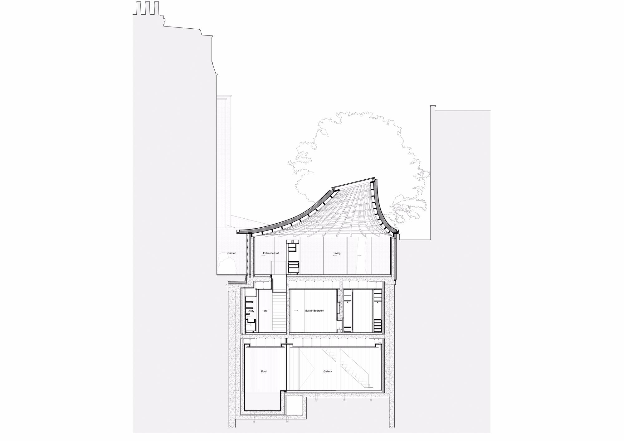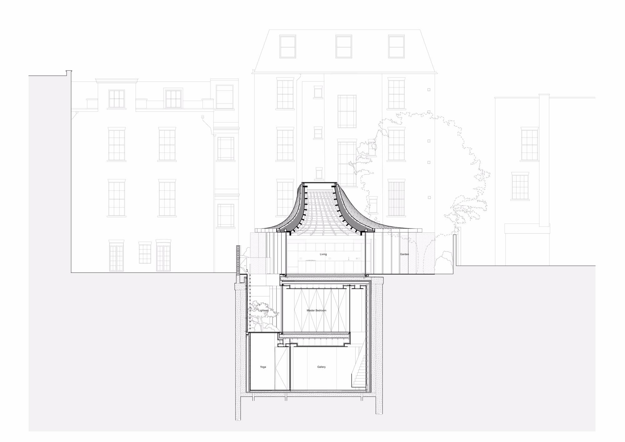 這是一座表面上隱匿于城市的園林銅頂亭閣。詹尼博茨福德建筑師設(shè)計的花園住宅是一個極不尋常的住宅,人們通過狹窄的通道,途經(jīng)一個19世紀(jì)40年代的諾丁山別墅探尋拜訪。該項目涉及一棟20世紀(jì)60年代時拆除的平房,現(xiàn)將其更換為大部分都深埋地下的獨立住宅。
