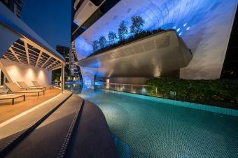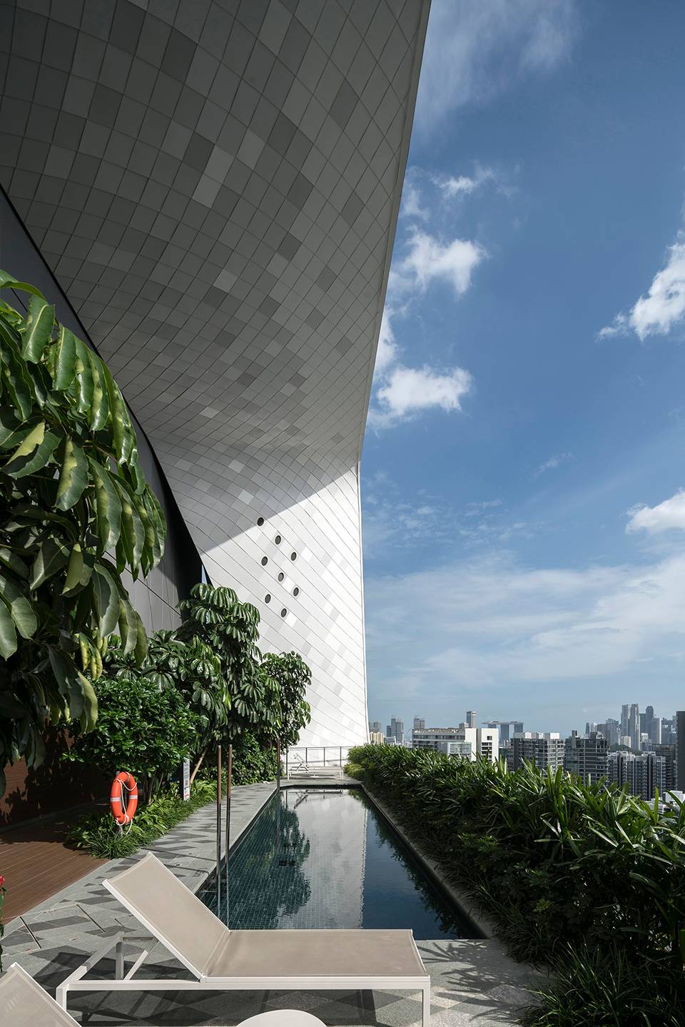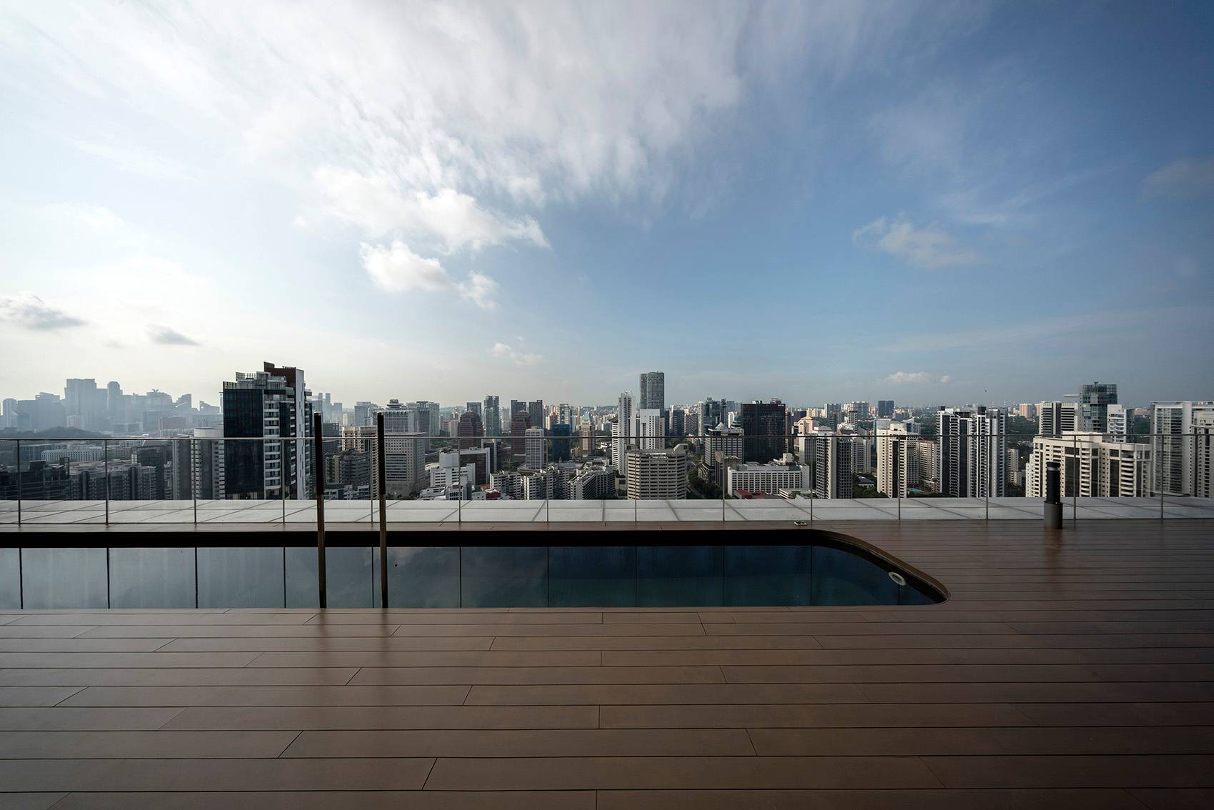 四個(gè)相互堆疊的住宅群體被設(shè)計(jì)成不同功能和定制的生活模式。 一臥室城市閣樓公寓位于的較低的天空框架上方,組成塔樓的低層部份。第二組城市景觀單位(兩居室公寓)面向相鄰的良木山(Goodwood Hill),位于一臥室公寓之上。然后是園景單位,置于第二個(gè)天空框架上方。而塔樓最后一個(gè)住宅群體包含了三個(gè)獨(dú)特的樓頂公寓,并擁有私人屋頂陽(yáng)臺(tái)。