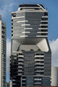 Scotts大樓的建筑理念是一個(gè)融合多種居住類型和規(guī)模的“垂直城市”。同時(shí),空中平臺(tái)、樓頂公寓頂層花園和獨(dú)立陽(yáng)臺(tái)形式的戶外綠化區(qū)域構(gòu)成了設(shè)計(jì)的重要元素。塔樓的垂直城市概念取自︰“城市”、“鄰里”和“家”。