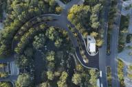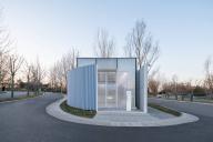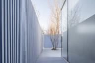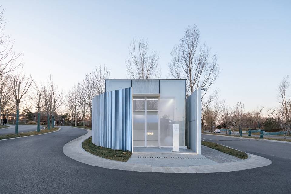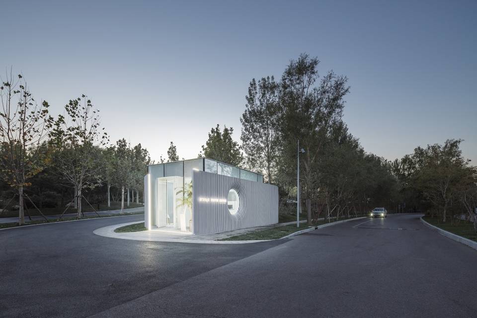 我傾向于在建筑立面上形成層層疊疊的空間來模糊建筑的氣候邊界。首先我把原來的門房剝成一個(gè)純粹的半透明玻璃盒子,但和以往在氣候邊界前設(shè)定半透明的帷幕不同,這次我在玻璃盒子前設(shè)定了一道實(shí)體圍墻作為建筑的領(lǐng)域間歇并圍合玻璃盒子形成了一個(gè)半開放的院落。這道圍墻不是所謂的附屬設(shè)施,它和玻璃盒子以及院落一起成為游客中心的完整表達(dá)。但如果作為空間手段的嘗試就到圍墻此為止,倒也沒太多可以談的。那樣,圍墻就是明確的立面了,反而會(huì)掩蓋我試圖構(gòu)建曖昧和多層次立面的企圖。