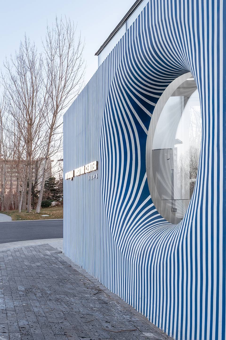 一天晚上發(fā)展商給我微信,說小業(yè)主們?cè)嵅⌒侣涑傻陌⒛莵営慰椭行模?覺得讓人不舒服。我回答說這個(gè)小房子看上去有一些冒險(xiǎn),但是值得的。冒險(xiǎn)的原因是我沒有把這個(gè)游客中心設(shè)計(jì)成大家已經(jīng)習(xí)慣的白色房子,或者如大家期盼的那樣是俞挺特有的有顏色的房子,我把用像?;晟酪粯拥臈l紋包裹了整個(gè)立面,讓毫無心理準(zhǔn)備的小業(yè)主猝不及防而暈眩。