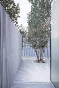 ▼玻璃盒子外部的圍墻形成了一個(gè)半開放的院落