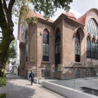 這個項目是基于墨西哥整個猶太人社區(qū)想要一個保存其歷史的安全且公共的場所而設(shè)計的。這座新建筑位于墨西哥城復(fù)興后的羅馬殖民地內(nèi),建造在羅德夫-塞德克猶太會堂旁的一小塊空地上。該體量是原有建筑的入口通道,同時還被賦予了新的用途,可以作為博物館和文獻(xiàn)庫來展示有關(guān)猶太文化的信息,尤其是在墨西哥衍生的猶太文化。