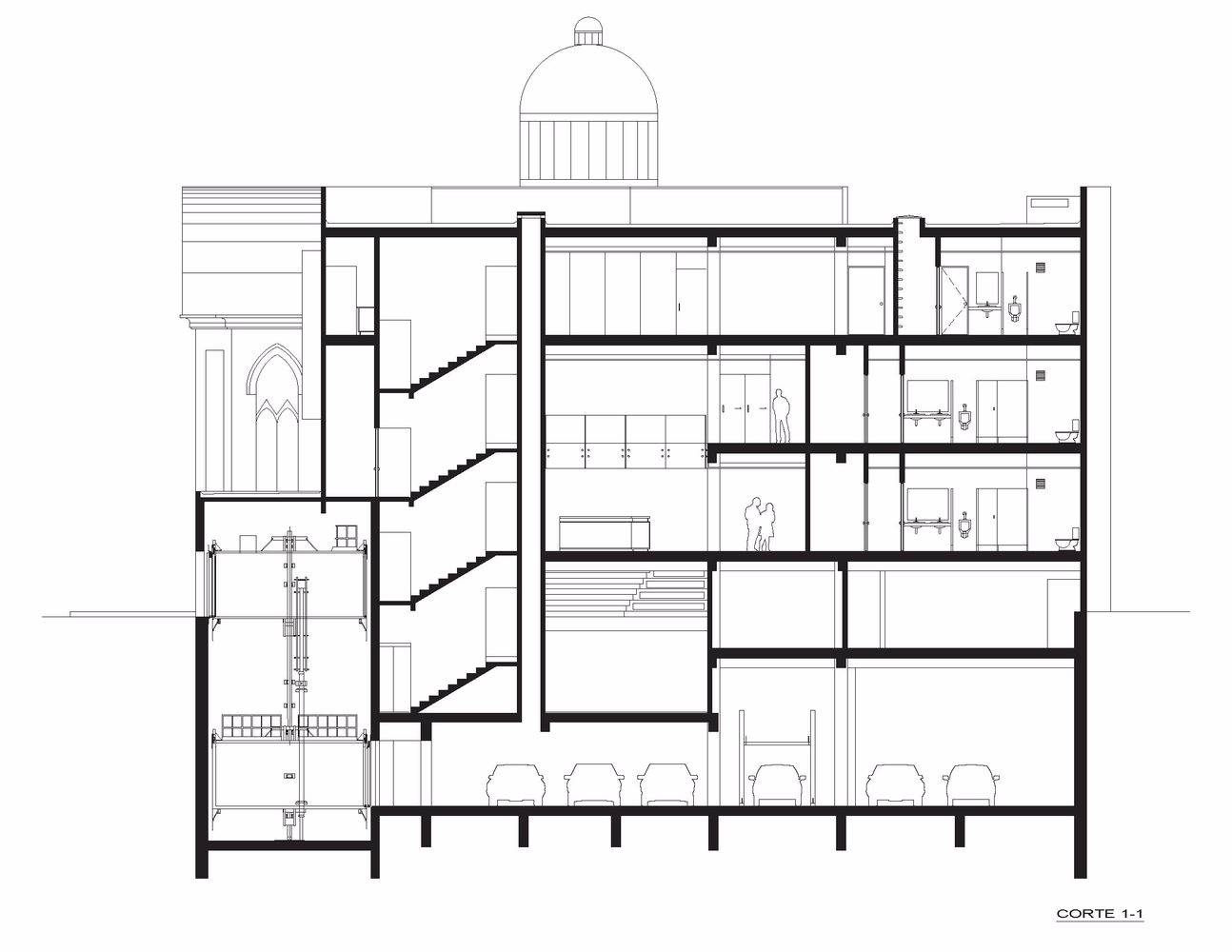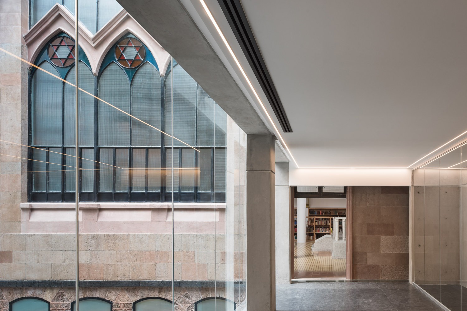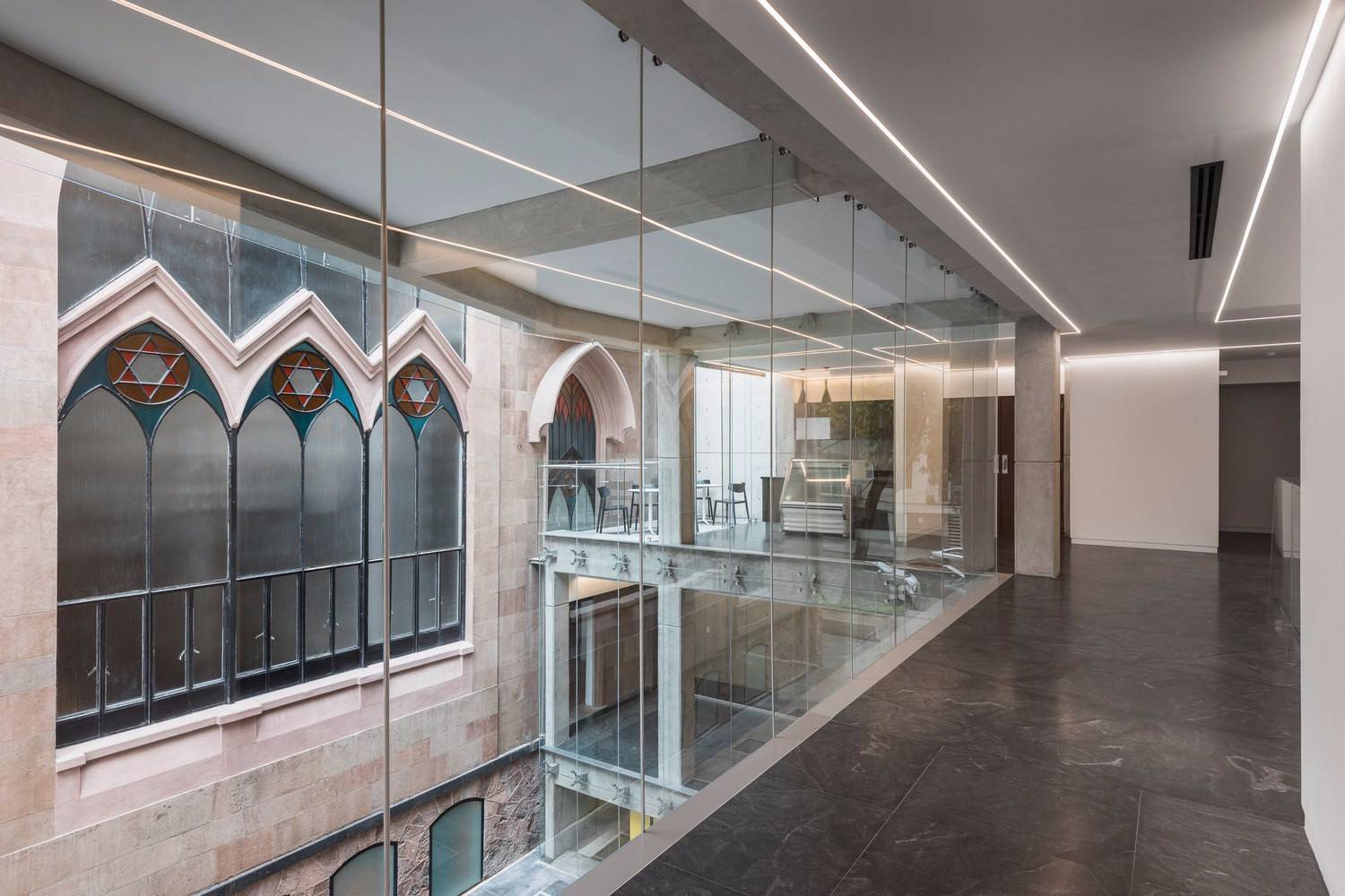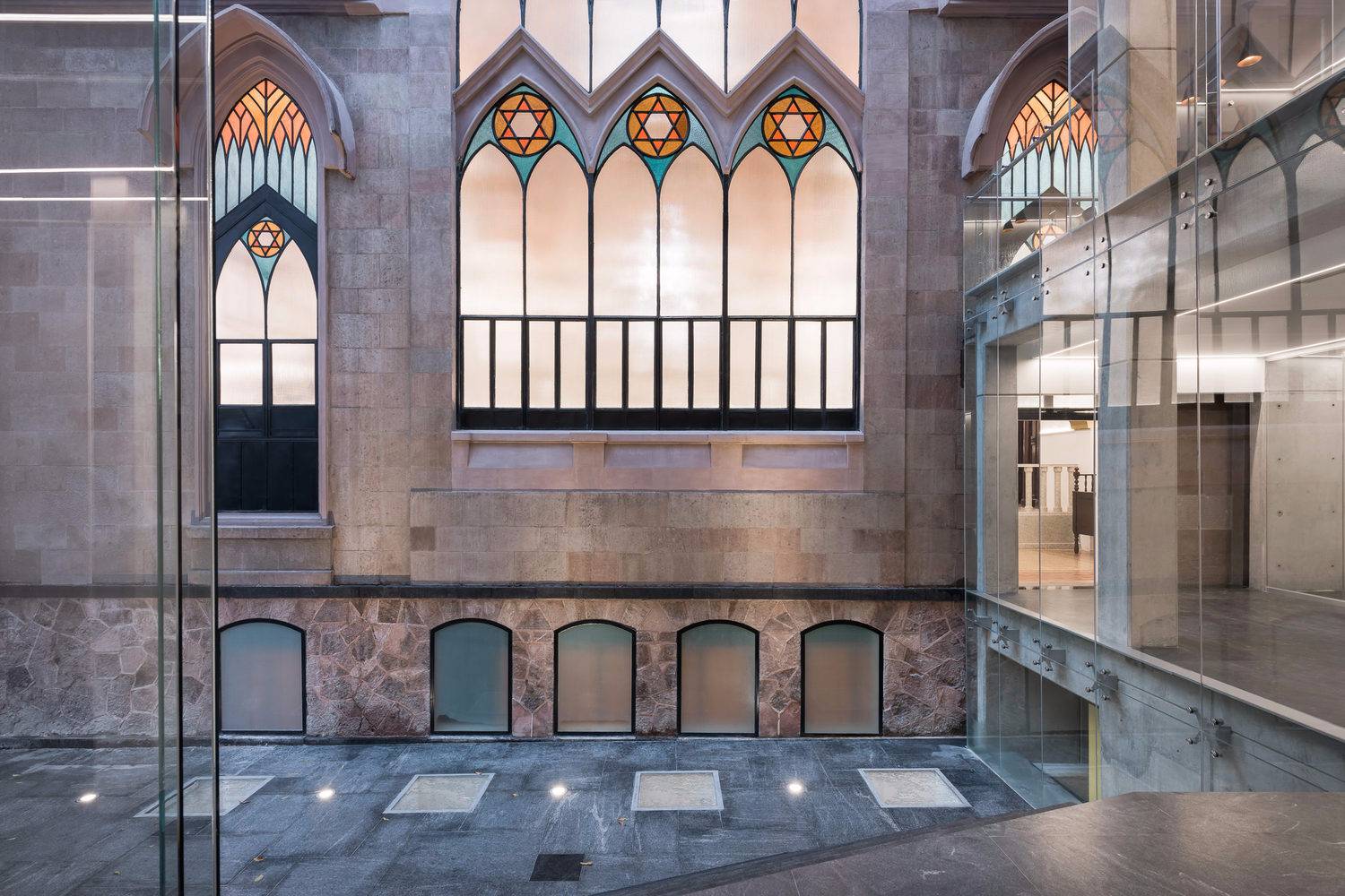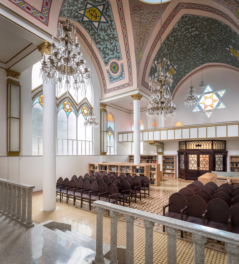 老檔案、從十七世紀(jì)流傳下來的書籍、舊護(hù)照和移民卡、報紙和雜志、照片和視頻、重要的社區(qū)文件和信件等,都可以在這里找到,供研究人員伴隨著頭頂上的大吊燈和彩色玻璃窗在墨西哥猶太社區(qū)年代最久遠(yuǎn)的宗教場所之一中學(xué)習(xí)。所有材料都安全地存放在猶太教會堂現(xiàn)有的半地下室內(nèi)的移動式擱架上,該擱架也一直延伸到新建筑中,這兩個空間都由特殊的微氣候進(jìn)行控制,有利于保存文件。