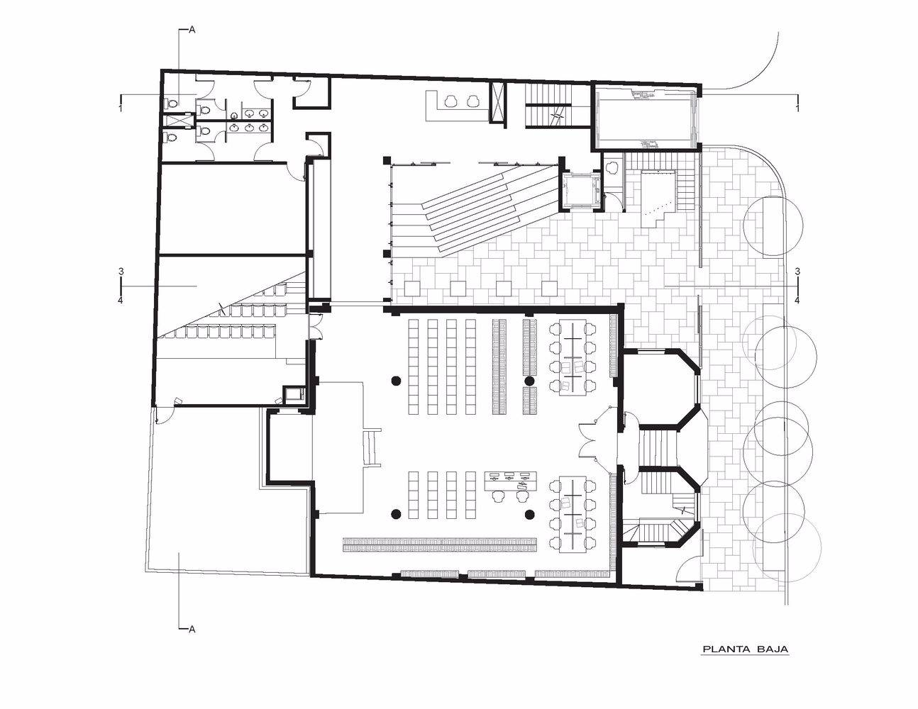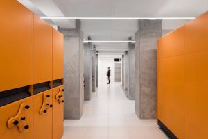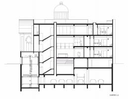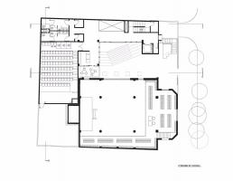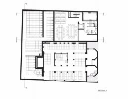 但是建筑內(nèi)的功能設(shè)置比一般檔案館更為豐富,比如還包括有學(xué)習(xí)中心、供85人使用的會議禮堂、小型露臺咖啡館等,目的在于使建筑全年保持一定活力和功能性。文獻(xiàn)中心內(nèi)還有一個多功能空間,可以用于講授課程、在圓桌上討論學(xué)習(xí),甚至可以舉辦一個小型展覽。新建筑的最頂層內(nèi)是行政辦公室,能夠通過其玻璃立面俯瞰猶太教堂;修復(fù)工作間通過書籍電梯與檔案館相連,電梯可以一直下降到半地下室內(nèi)。