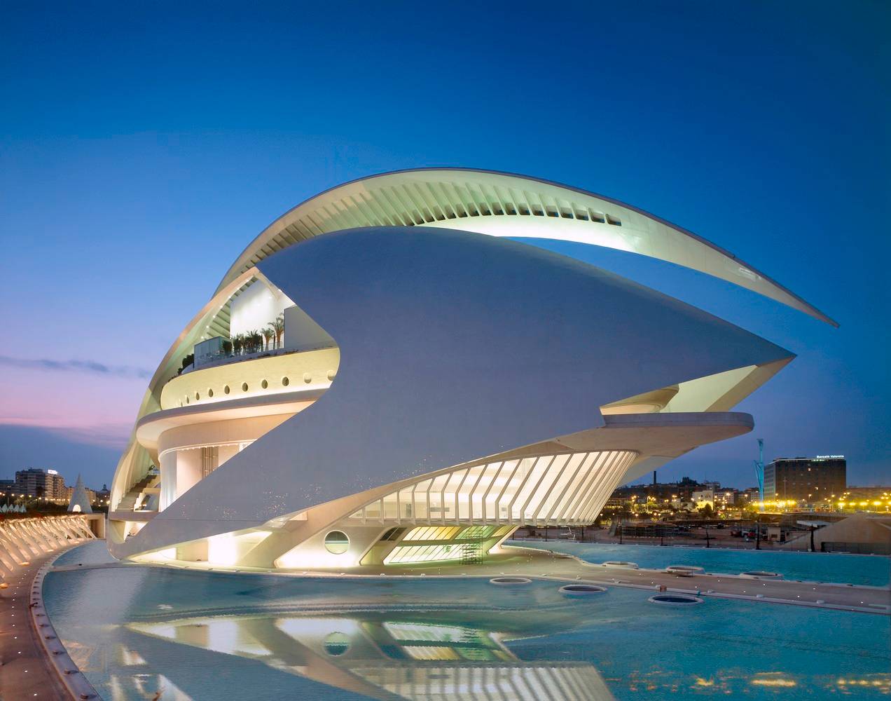 瓦倫西亞歌劇院中心作為一個大型演藝設施綜合體,承擔了瓦倫西亞活力的城市新地標,有助于鞏固和建立聯(lián)合它所在的區(qū)域的城市關系。該項目的主要組成部分包含了一個可容納1,706人的大型禮堂,適合多種需求比如歌劇制作以及音樂會和芭蕾舞劇等等;還有一個380個座位的室內(nèi)音樂廳,用于表演,戲劇和其他活動(講座,會議等); 一個可容納1,520人的禮堂,配備了先進的電影和視頻投影設備系統(tǒng),可以在特殊的視頻屏幕上觀看特定的表演。位于主樓附近的是一個可容納400個座位的觀眾席,用于實驗型藝術劇院和舞蹈表演等,還有用于美術和裝飾藝術展覽的畫廊空間。