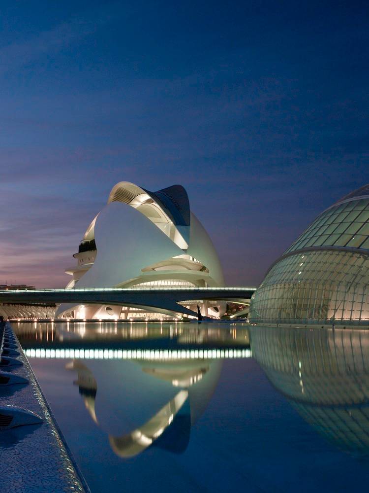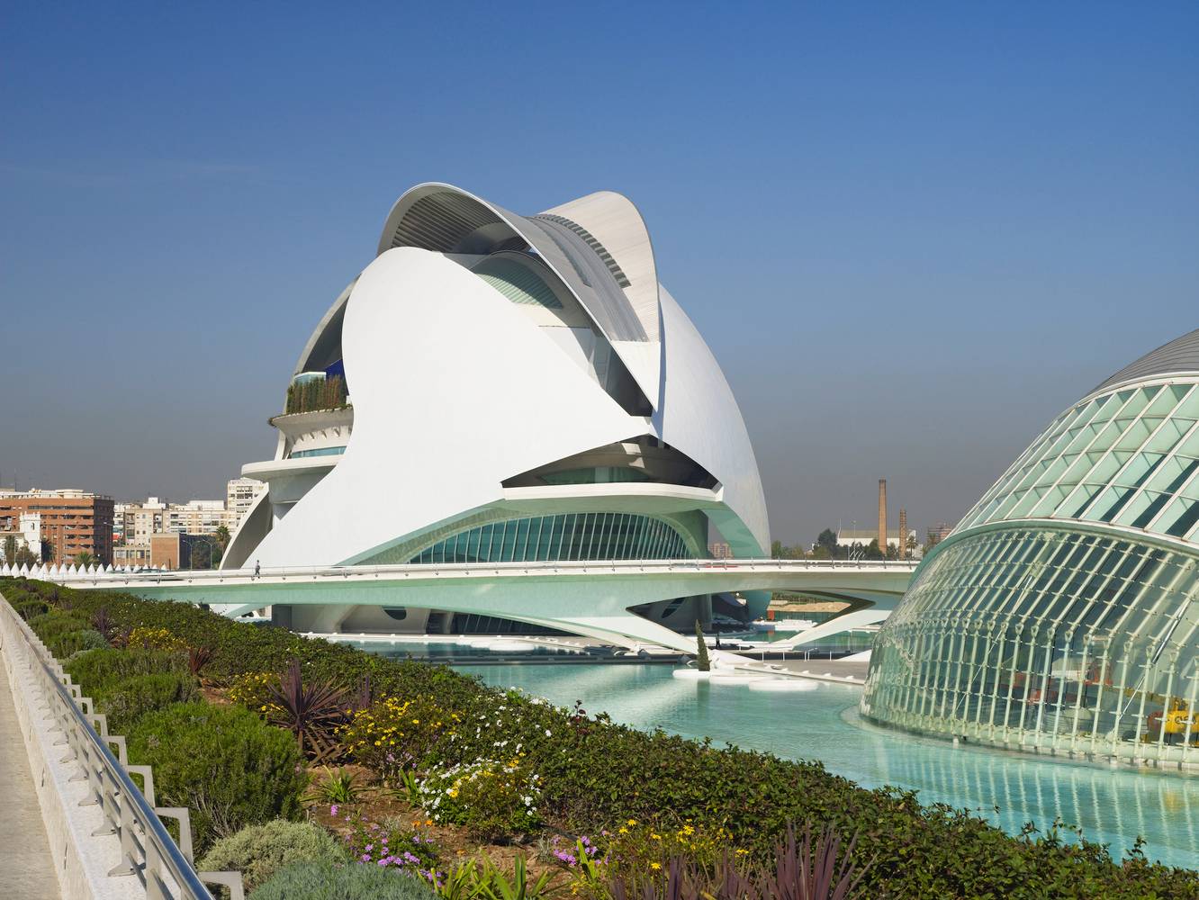 瓦倫西亞歌劇院可以被看作是藝術與科學雙重的復雜綜合體,由圣地亞哥·卡拉特拉瓦(Santiago Calatrava)負責設計,建筑位于圖里亞河干涸的河床沿岸旁一個86英畝的場地內(nèi),作為設計的最終元素,中間位置位于老城區(qū)和Nazaret酒店的沿海區(qū)之間,通過這樣的一個特殊的地理位置,瓦倫西亞歌劇院起著很重要的作用,把城市內(nèi)新的關注帶給相對不是很理想和欠發(fā)達的地區(qū)——巴倫西亞,而另一方面能夠將城市的中心與沿岸廣闊的大海進行某種連接,關聯(lián)起來。瓦倫西亞歌劇院是一個線性軸線布置的建筑群之一,共有三個建筑物,形成一個整體的線性布局,它們分別是:從遺址西端的歌劇院,到天文館/ IMAX劇院(半球劇院),到東端的PríncipeFelipe科學博物館。另一個被稱為L'Umbracle的建筑是一個長廊和停車庫,建在一個開放的拱廊內(nèi),同時也是冬季花園的一個成功的現(xiàn)代化改造案例。結構連接到遠處廣闊的綠意花園和蔚藍水體。