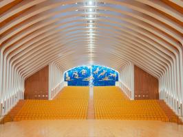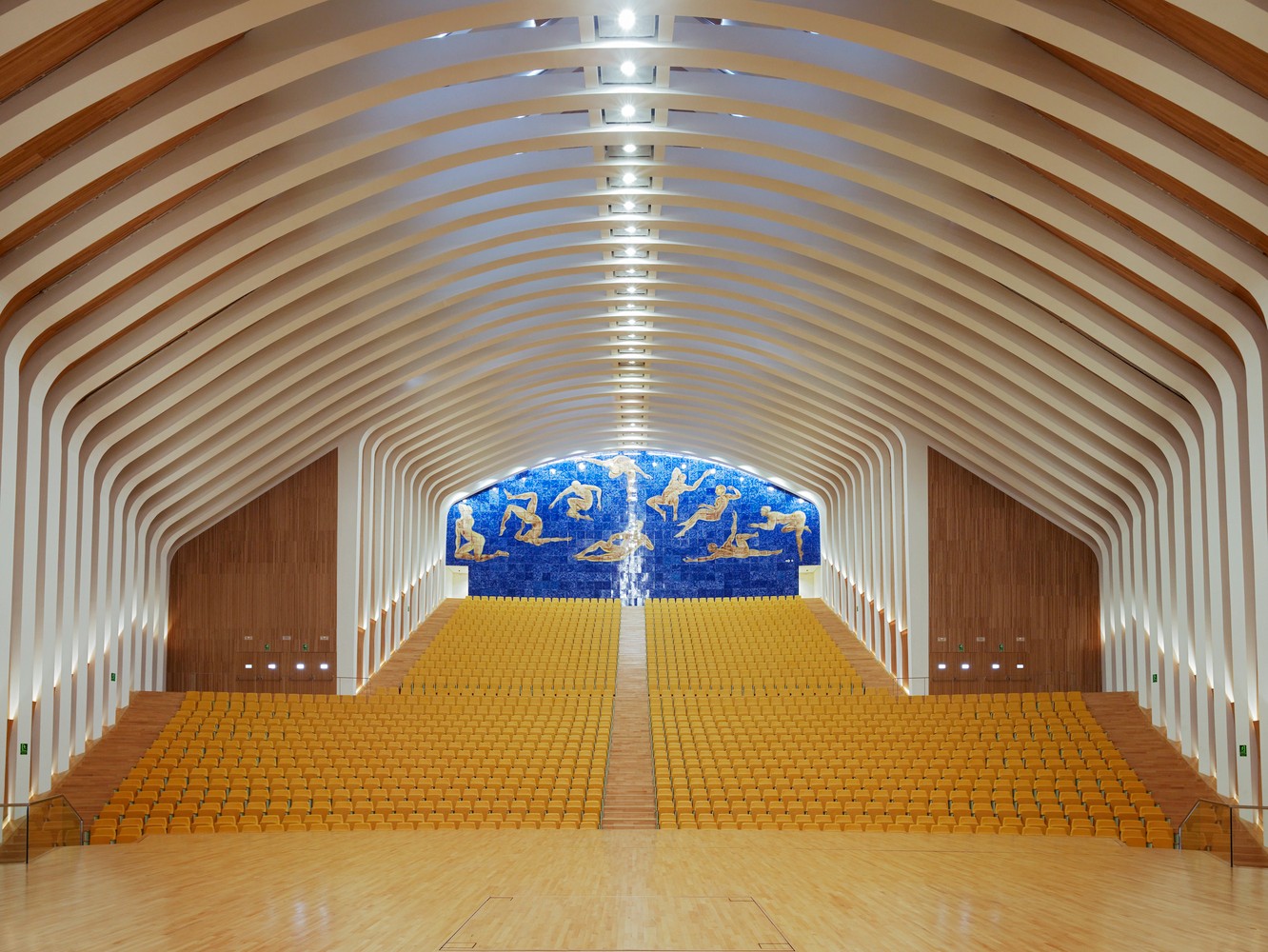 卡拉特拉瓦還特意為該劇院室內(nèi)的主要空間設計了永久性的藝術裝置,其中包含了兩個大型的壁畫藝術品,以及兩個陶瓷材質的大型浮雕雕塑。