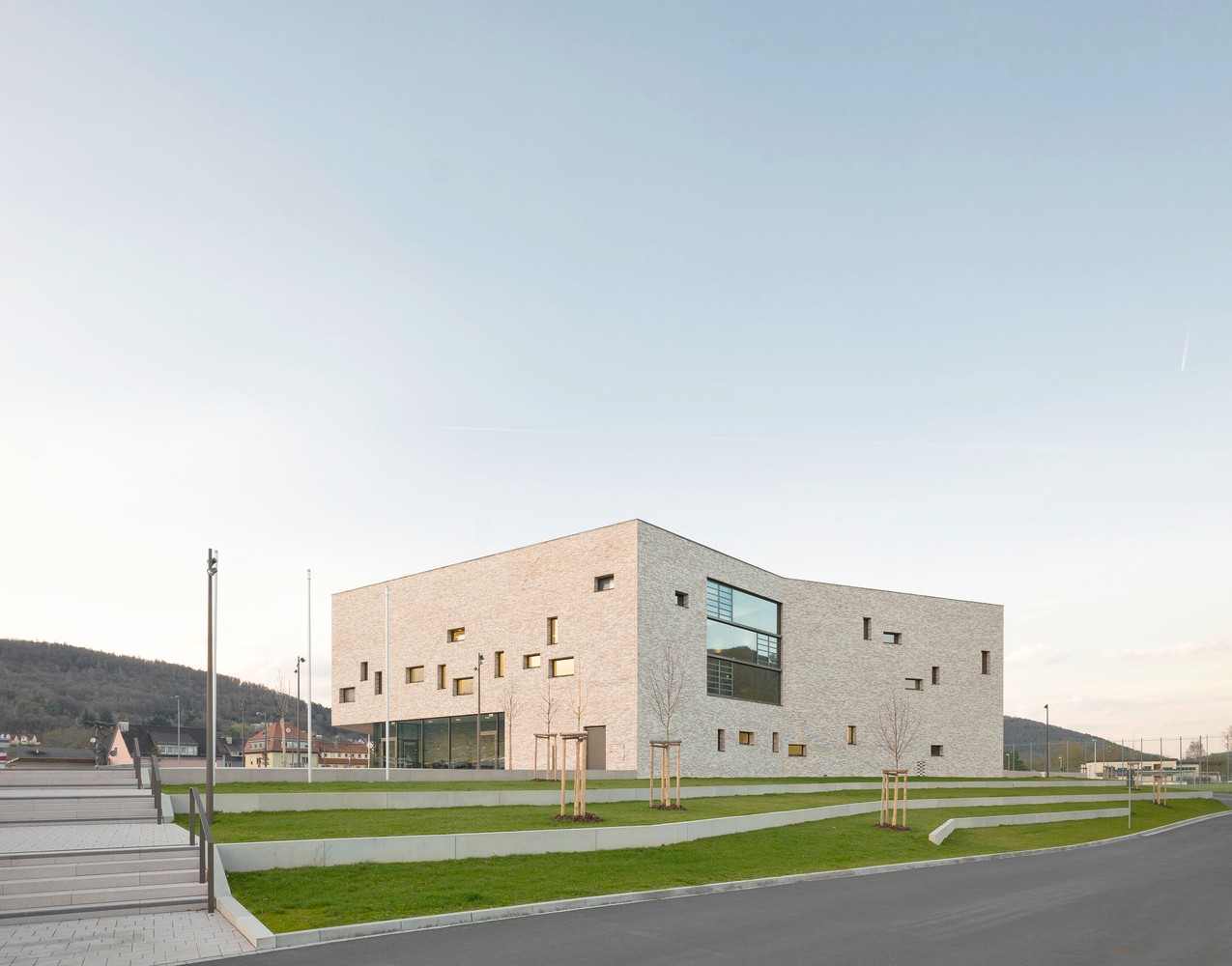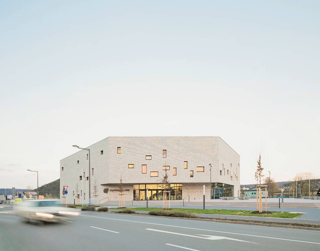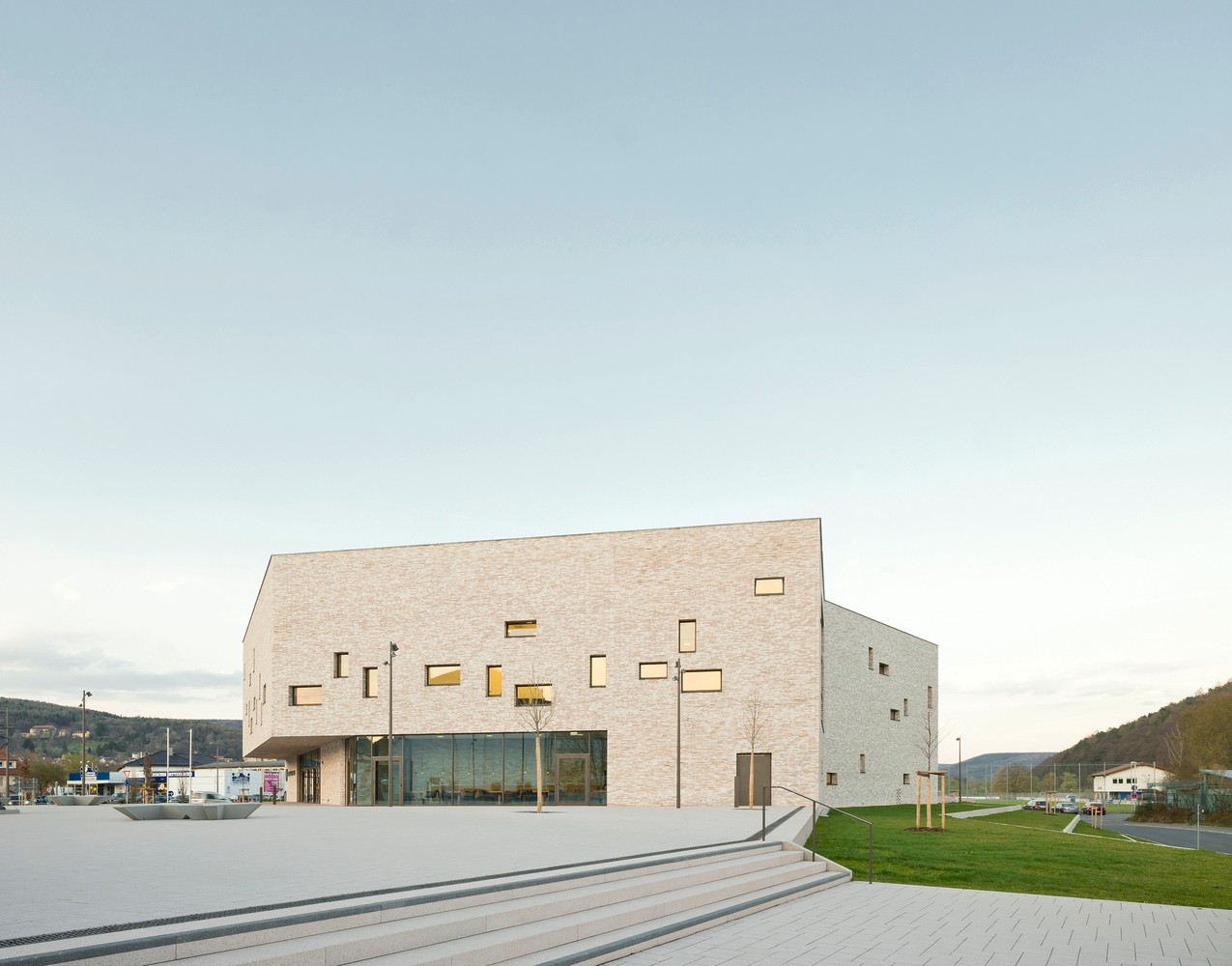 位于德國(guó)洛爾阿姆梅因的市民中心占據(jù)了城鎮(zhèn)入口處的一個(gè)重要城市位置,為音樂(lè)、劇院和會(huì)議等集體性活動(dòng)創(chuàng)造了一個(gè)具有文化屬性的目的地。該市民中心呈現(xiàn)出一個(gè)七角多邊形的建筑造型,也正是由于這種多邊形的形式,建筑沒(méi)有哪一面是“背面”, 任意一面都可以獨(dú)自回應(yīng)鄰近城市空間的多樣性。盡管如此,市民中心附屬的公共廣場(chǎng)人為地為建筑創(chuàng)造出一個(gè)面向市中心的朝向。