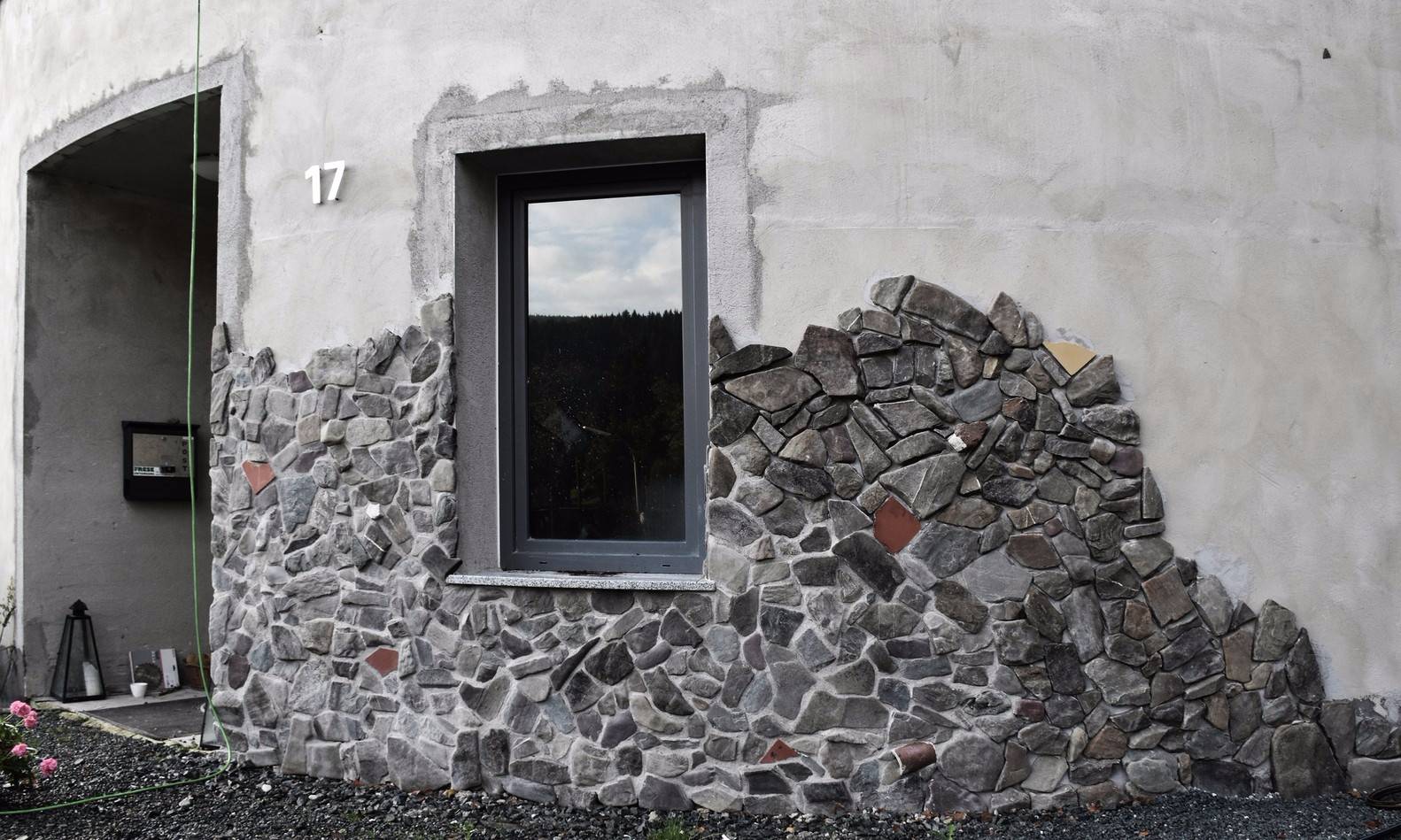 與室外的聯(lián)系反映了業(yè)主扎根于這片土地。農(nóng)場(chǎng)主與自然的密切聯(lián)系同樣反映在業(yè)主自己設(shè)計(jì)的立面上,他用附近小溪里的石頭做成飾面,讓建筑連續(xù)而完整。