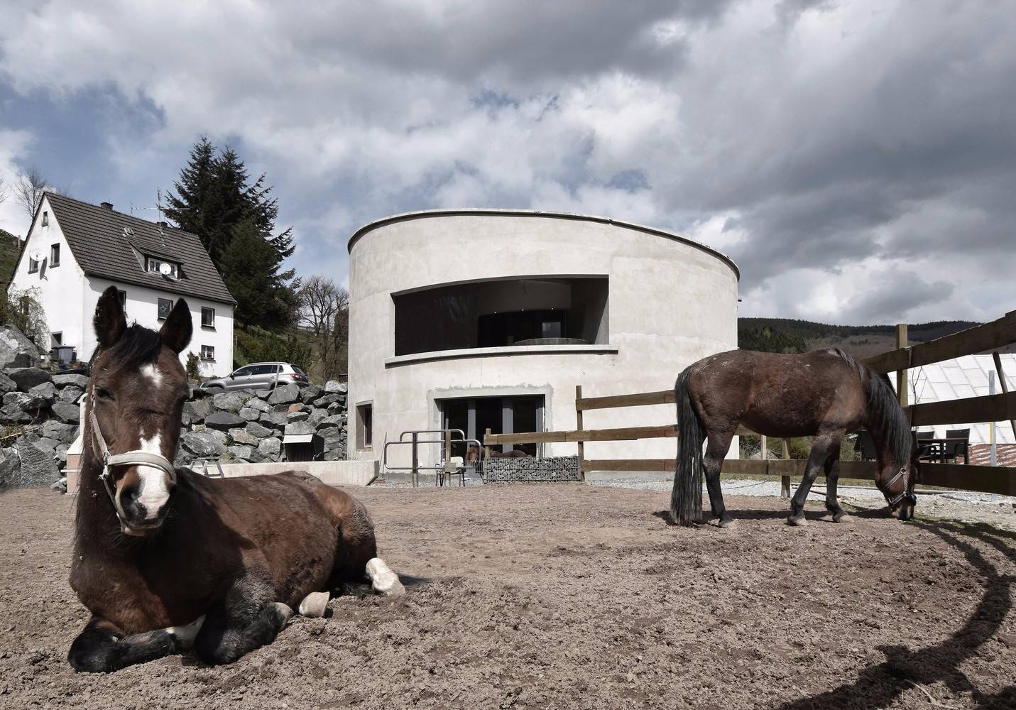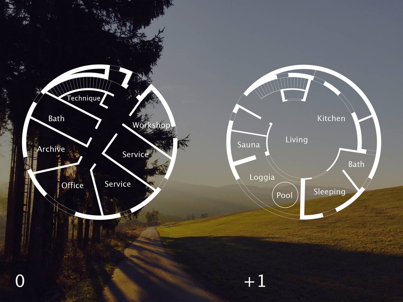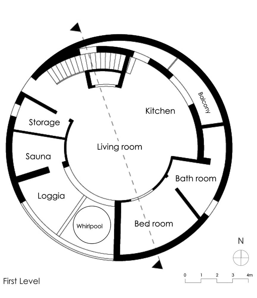 F別墅的業(yè)主有農(nóng)學(xué)背景,與他的父親同為德國(guó)沼氣領(lǐng)域的先驅(qū)。他想要一個(gè)圓形農(nóng)場(chǎng)的主要原因是,從節(jié)能的角度考慮,建筑的表面積與體積比應(yīng)盡可能理想。此外,他熱愛空間最基本的氛圍。