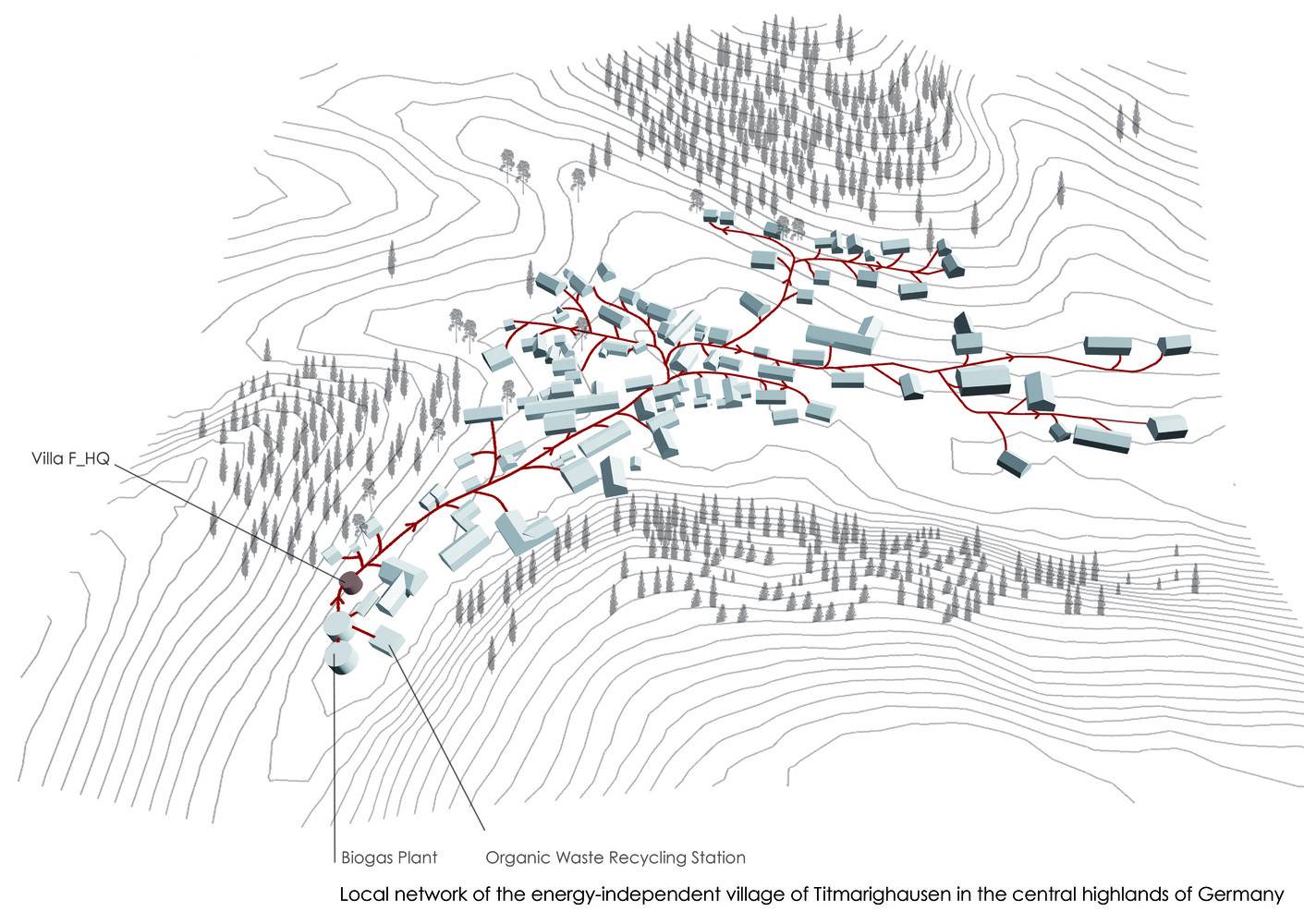 節(jié)能與保護(hù)環(huán)境是設(shè)計(jì)的核心元素。建筑的能量供應(yīng)與廢棄物處理都依賴于沼氣系統(tǒng)自給自足,因此稱為“離網(wǎng)”。近些年來沼氣獲得巨大的吸引力,林業(yè)、農(nóng)業(yè)、廢棄物產(chǎn)生的沼氣在一個(gè)生物能村中用來發(fā)電與發(fā)熱。在全球范圍內(nèi),它所蘊(yùn)含的巨大能量可以減少對(duì)化石燃料的依賴。