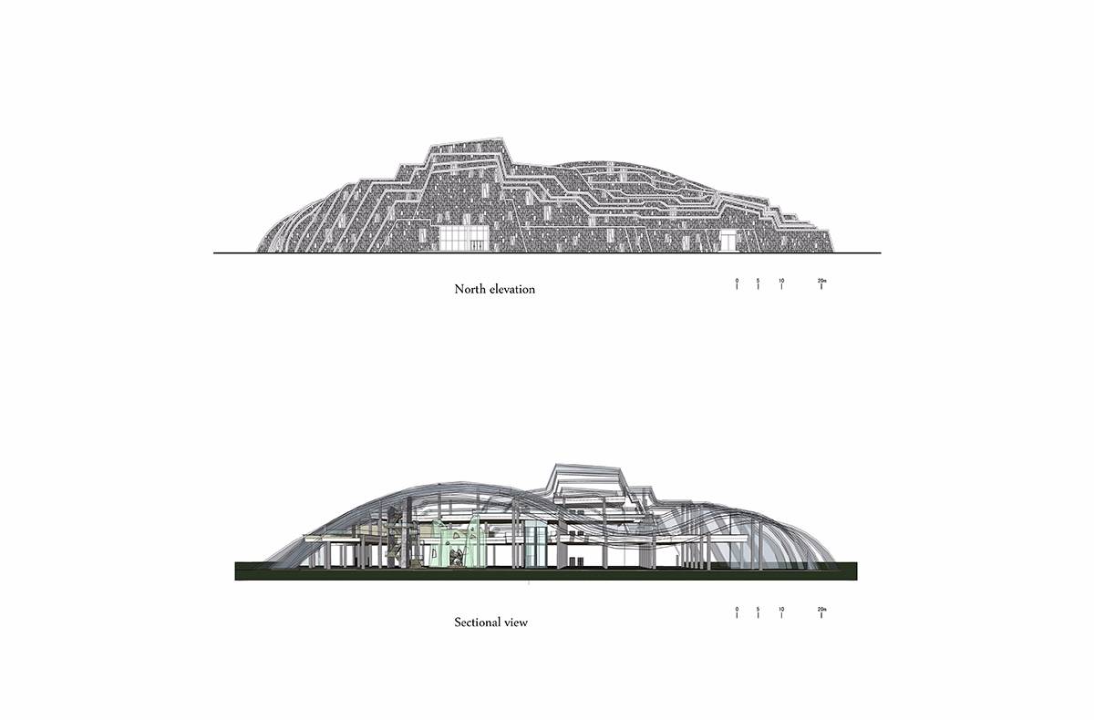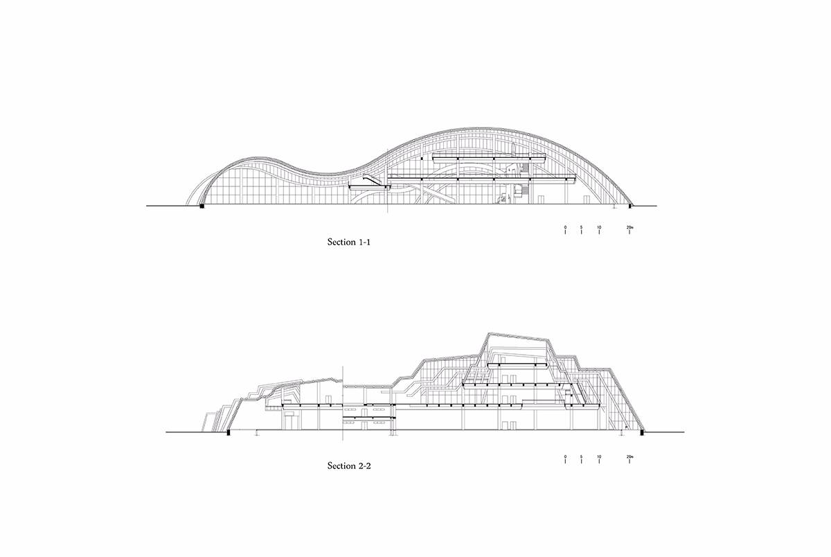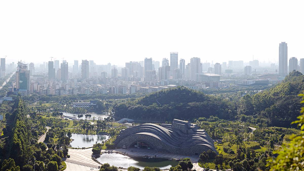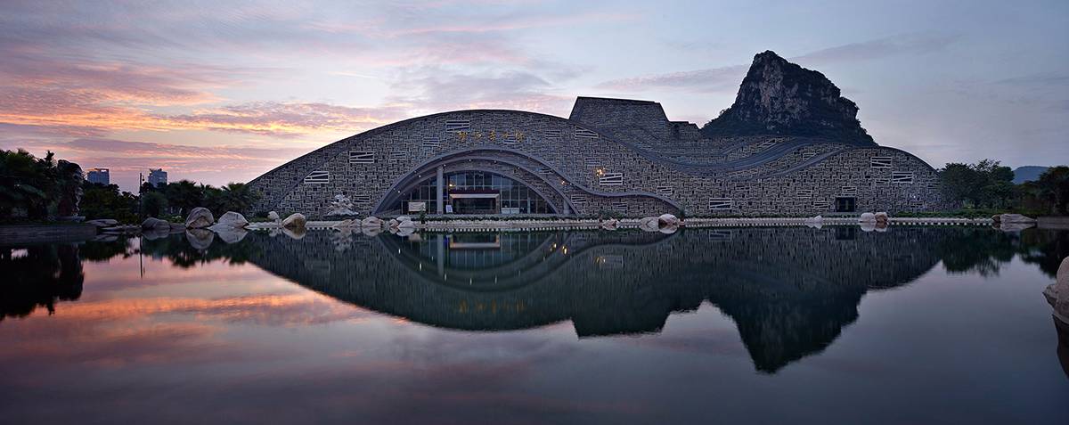 ▲奇石館體型呈前曲后折、與周圍山水和諧變化