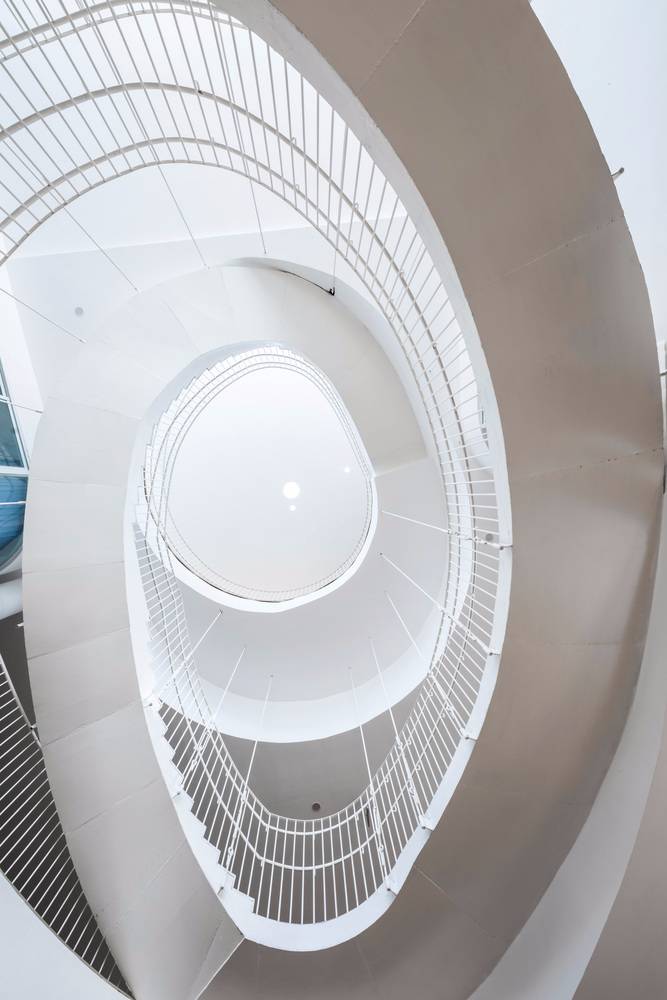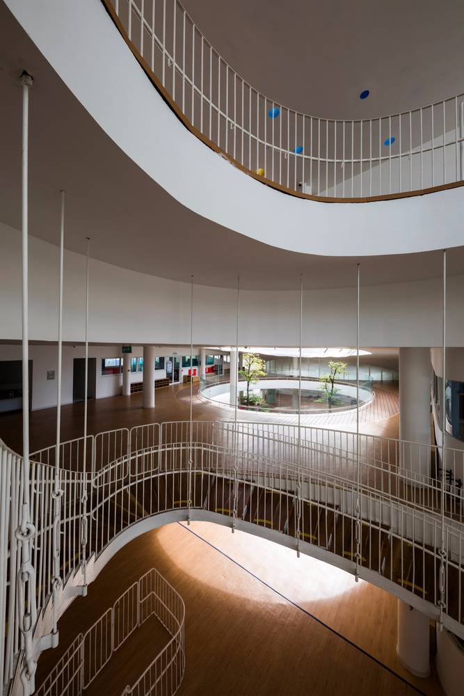 從外部造型上來說,幼兒園將兩個(gè)獨(dú)立的體量進(jìn)行了區(qū)分,一個(gè)是斜坡形的,另一個(gè)是位于山上的幾何體量,為體育和藝術(shù)活動提供了靈活的空間,同時(shí)還能擁有遠(yuǎn)眺無盡城市的壯闊視野。坡地下面的空間,即“小山”的內(nèi)部用作教室,由一個(gè)大型的多功能廳連接,是幼兒園的一個(gè)中心組成部分,允許孩子們在日常和特殊場合進(jìn)行各種教育活動。