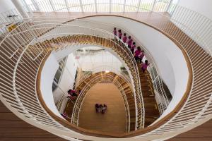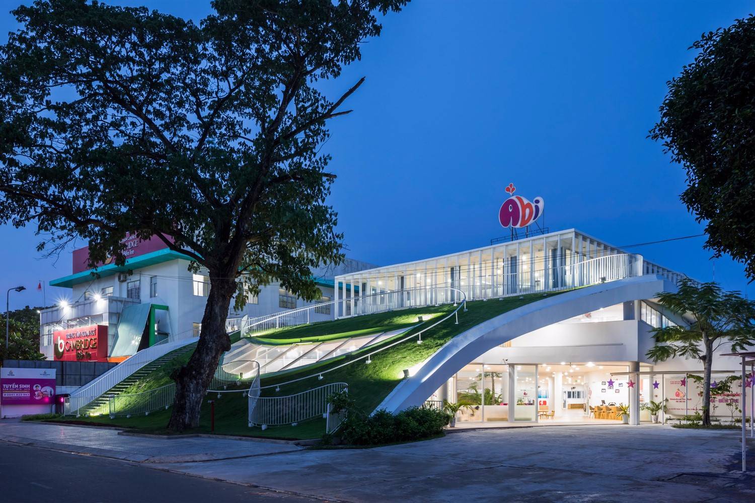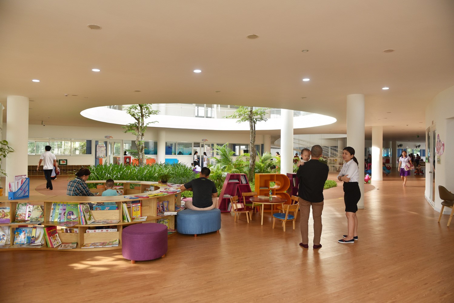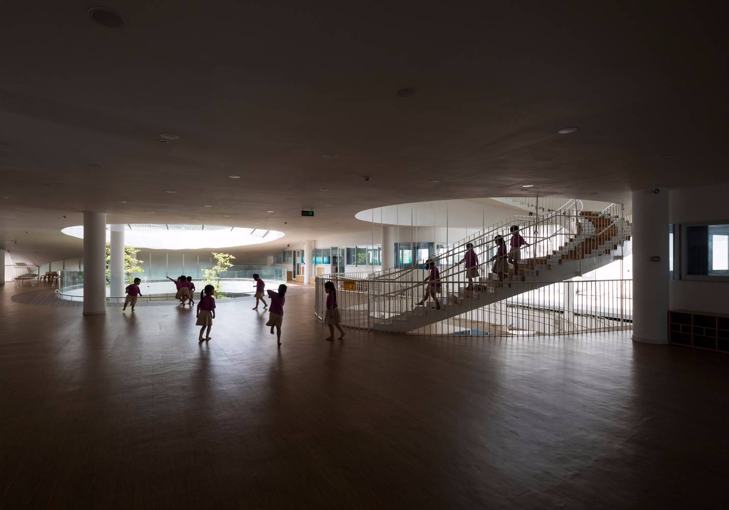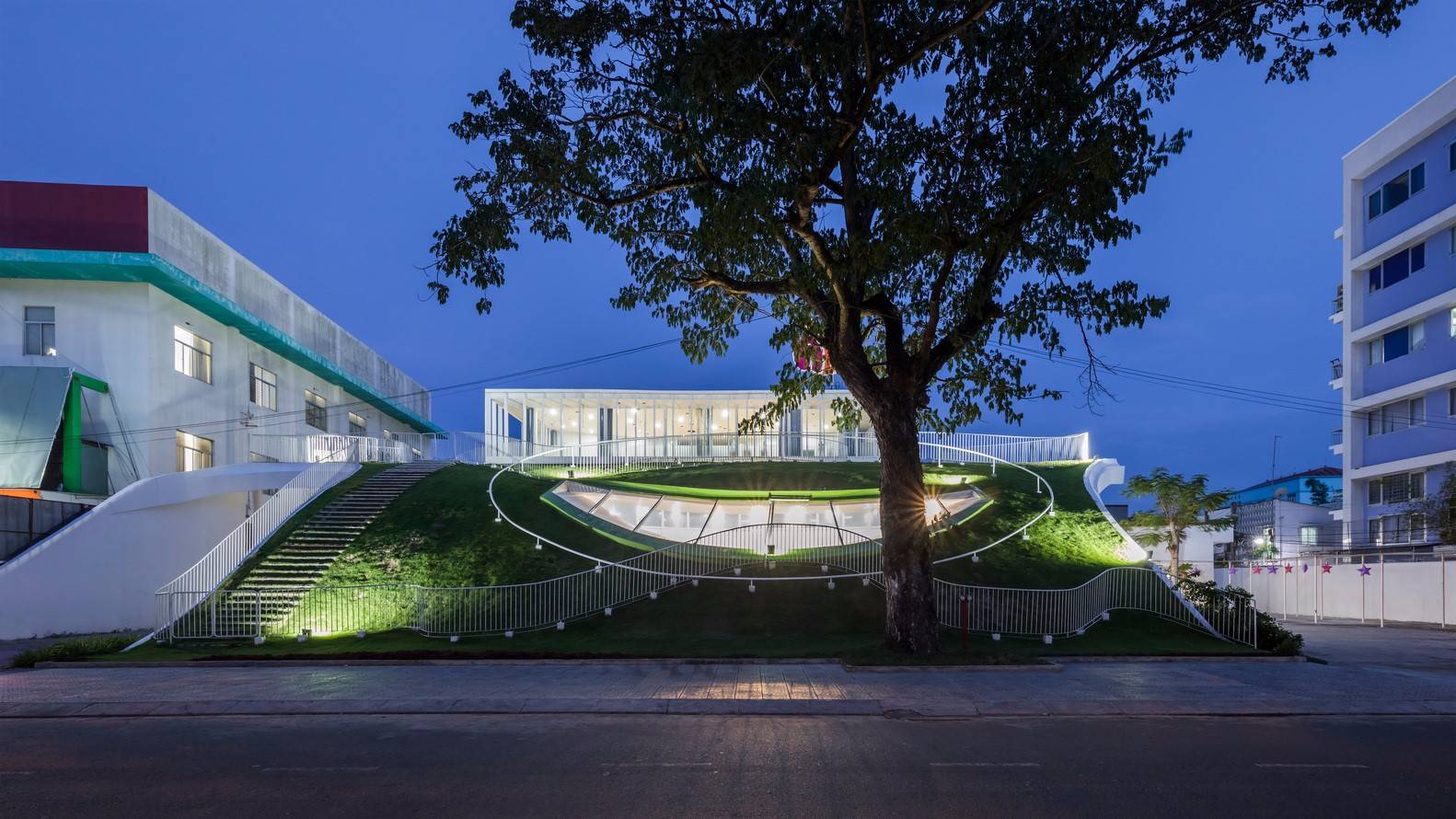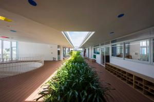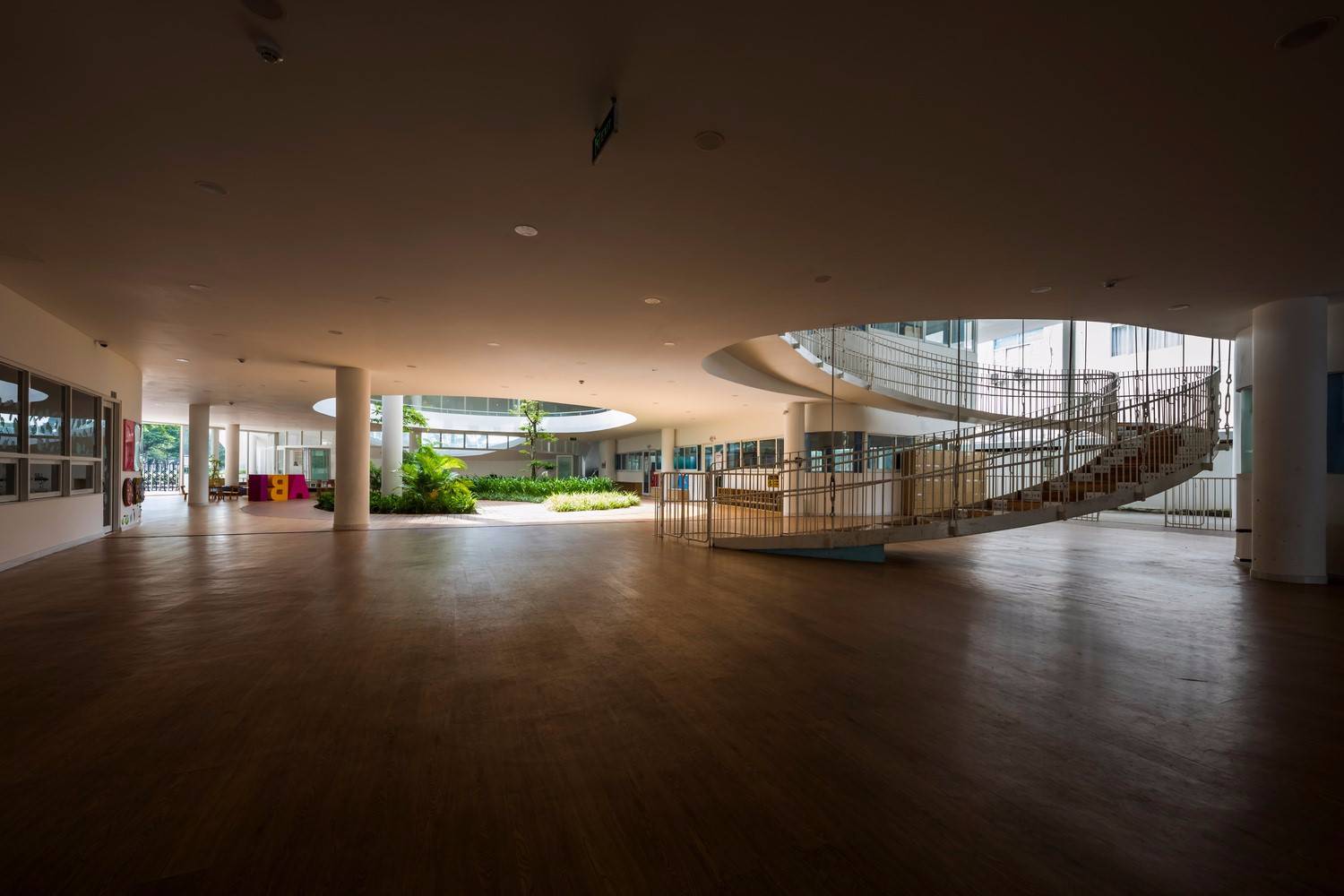 為了表達(dá)出對這片土地壯麗之美的贊揚(yáng)之情,事務(wù)所采用了傳統(tǒng)越南建筑語匯的構(gòu)成要素,該語匯通常包含開放的平面圖布局,同時(shí)平面圖在剖面上用水平面清晰地描繪出來,以追求將建筑融入更宏觀的生態(tài)環(huán)境中。這些空間的形成暗示了以兒童為導(dǎo)向的教育校園應(yīng)該是什么樣并且是如何構(gòu)成的。孩子們應(yīng)該能夠在一個(gè)有趣的環(huán)境中輕松地表達(dá)、探索和學(xué)習(xí),讓他們發(fā)揮出最好的一面。