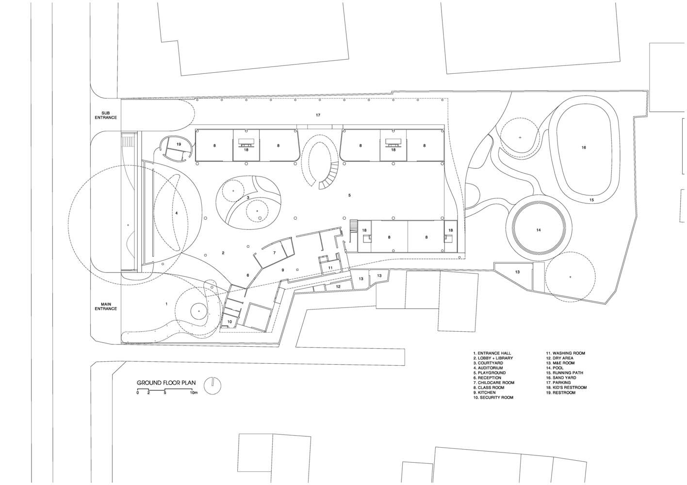 在這座幼兒園的存在下,其“小山”形的體量仿佛是一塊角石,有助于孩子們探索發(fā)現(xiàn)學(xué)校的建筑特征。它被設(shè)想成一個(gè)能使每個(gè)孩子的感官發(fā)生變化,激發(fā)他們內(nèi)心好奇心的地方,讓他們對幼兒園之外等待他們的世界感到興奮,充滿好奇心和期待感。