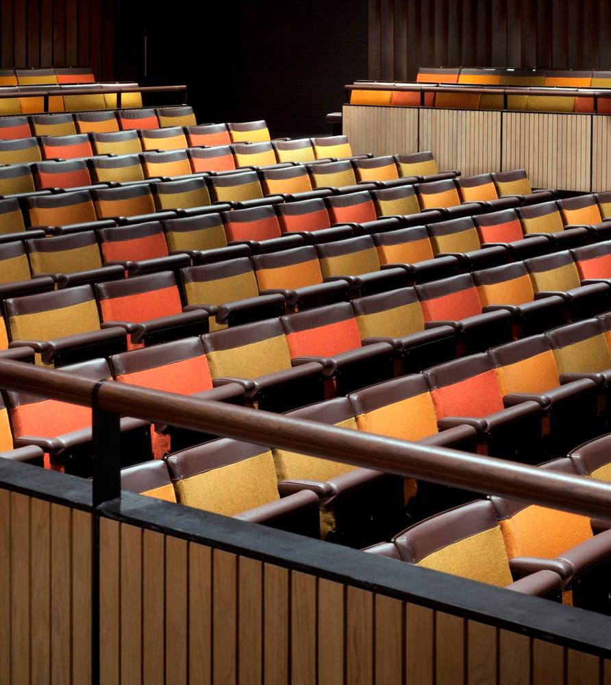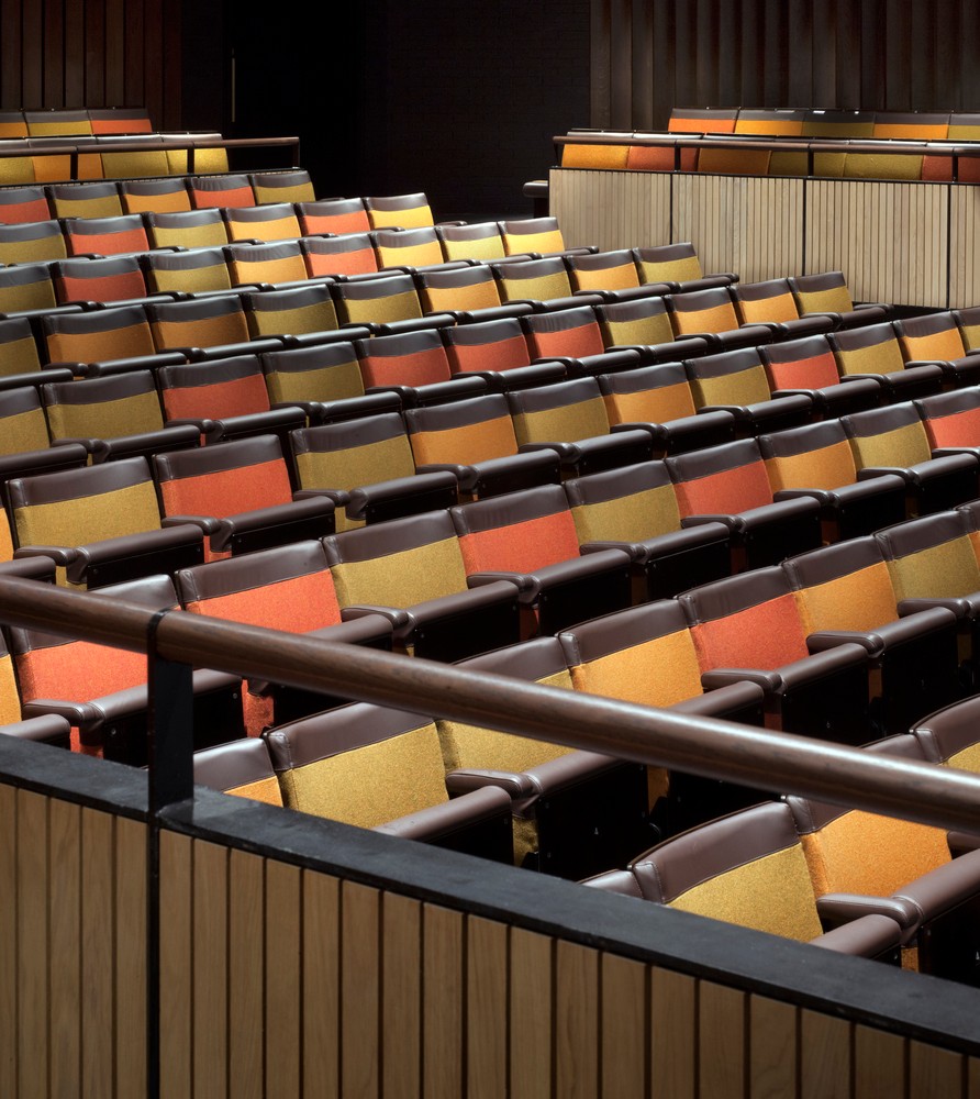 所以我們特別委托相關(guān)紡織品藝術(shù)品,由格拉斯哥的藝術(shù)家維多利亞莫頓(Victoria Morton)設(shè)計(jì),他與學(xué)生一起工作并探索了學(xué)校檔案調(diào)查背景以供設(shè)計(jì)研究。在愛(ài)丁堡的Dovecot工作室創(chuàng)建,從建筑物的入口處可以看到這些藝術(shù)壁掛,并在兩層的聯(lián)通處連接門(mén)廳。禮堂成為了一個(gè)豐富,黑暗的木質(zhì)襯里空間,與蒼白的木質(zhì)門(mén)廳形成了鮮明的對(duì)比。它為舞蹈,戲劇,裝配,音樂(lè)和演講提供了一個(gè)美麗而溫馨的空間,將觀眾包裹在表演者周?chē)瑫r(shí)在需要時(shí)采用更加傳統(tǒng)的結(jié)構(gòu)形式。