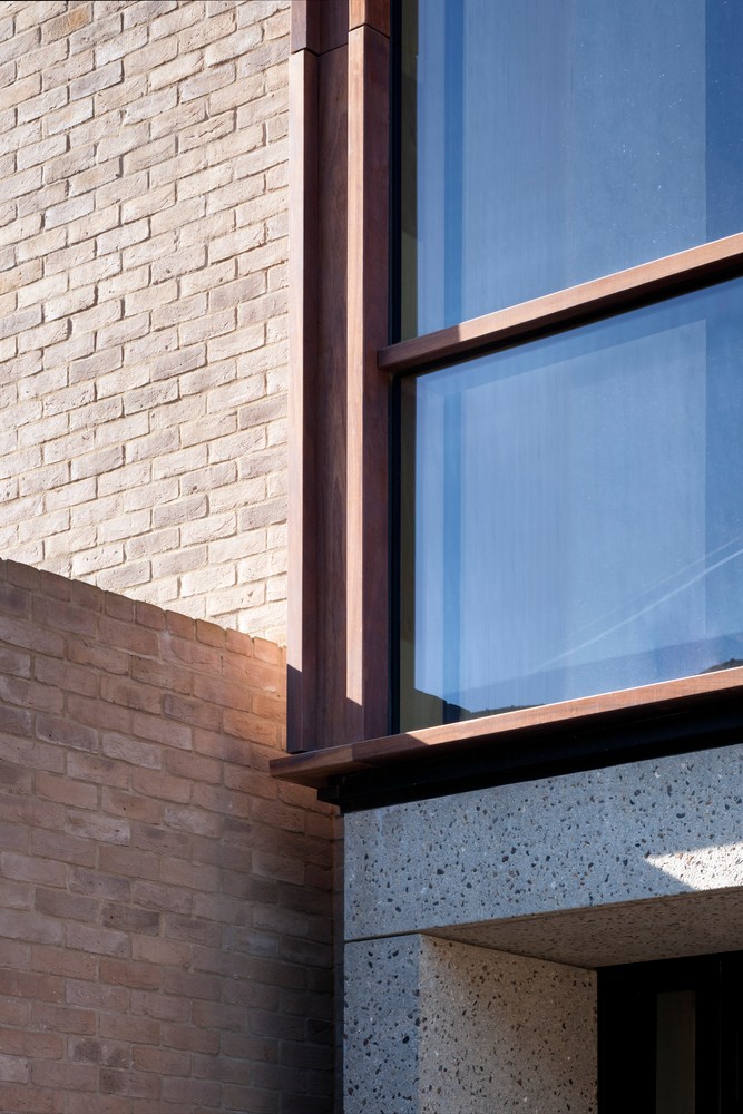與我們大部分戲劇工作一樣,特別是對(duì)于學(xué)校所需的彈性建筑材料的選擇,因?yàn)樗鼈兙邆浞欠驳哪陀眯院统墒炷芰﹄S著時(shí)間的推移而產(chǎn)生特定的變化??紤]到這一點(diǎn),我們?cè)O(shè)計(jì)師選擇了手工磚,預(yù)制混凝土。利用木結(jié)構(gòu)的溫暖,堅(jiān)固的調(diào)色板材為建筑增添魅力。