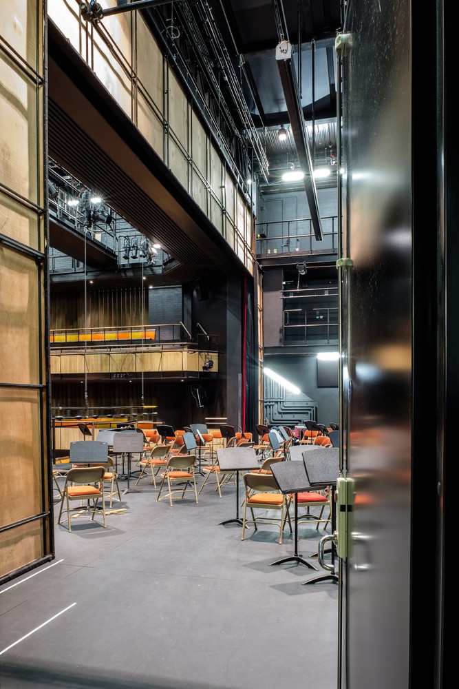 室內(nèi)的座椅蛇酒采用羊毛裝飾,自然色調(diào)暗示呼應(yīng)著外面的景觀。劇院住宿空間設(shè)有一套配備完整的更衣室和技術(shù)功能 空間。表演藝術(shù)中心擁有完整的后臺(tái)設(shè)施,使學(xué)生能夠體驗(yàn)制作的各個(gè)方面,并扶持其蓬勃發(fā)展的技術(shù)劇團(tuán)公司的活動(dòng)為該藝術(shù)中心提供基礎(chǔ)的活力。
