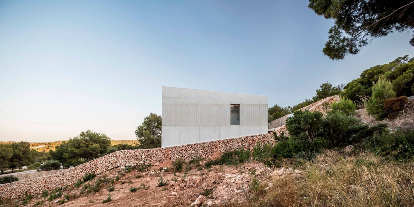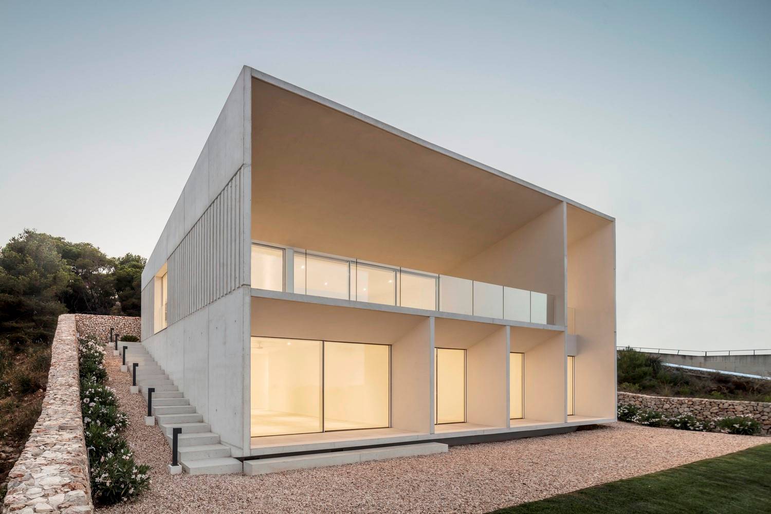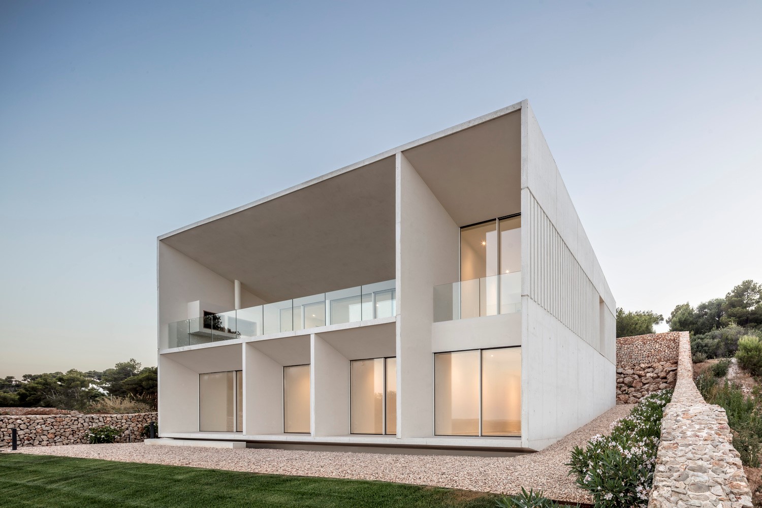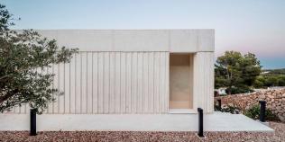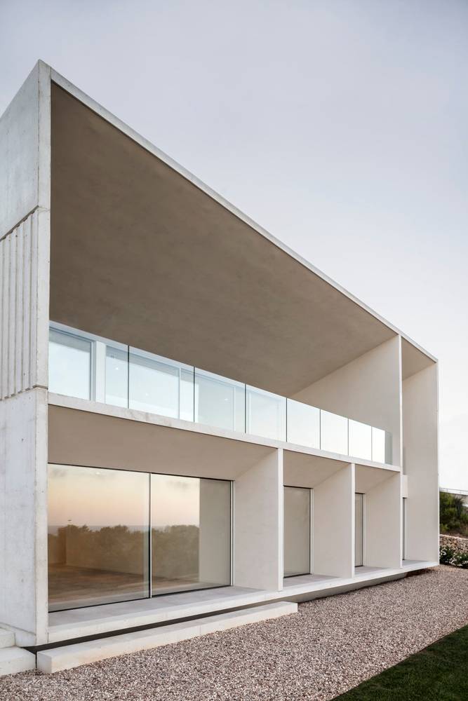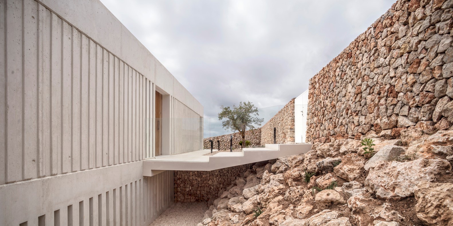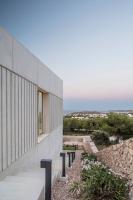 外立面選用現(xiàn)澆混凝土作為零維護材料,混凝土在梅諾卡島的高濕度和極端鹽水平的侵蝕性氣候中會很好地隨歲月老化得愈加迷人。房子的灰白色立面與房子周圍的赭色和赤土色土壤融為一體。最后,立面上的垂直條紋浮雕帶圍繞著門窗,使建筑立面在視覺上得到統(tǒng)一。