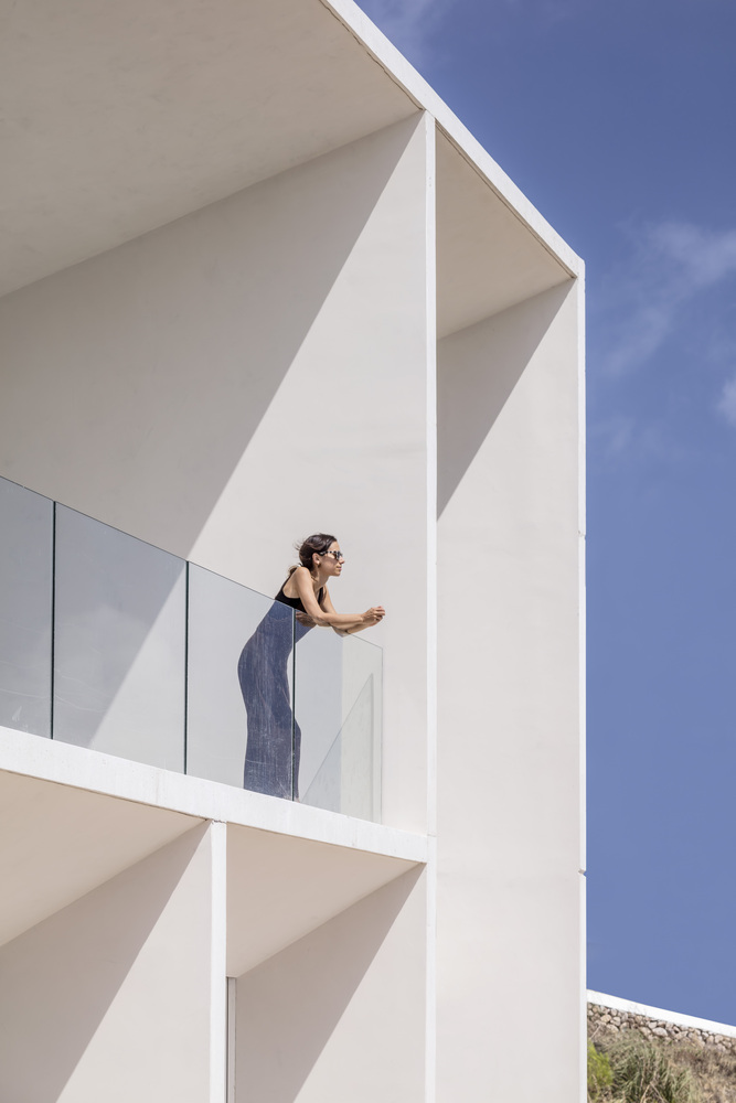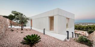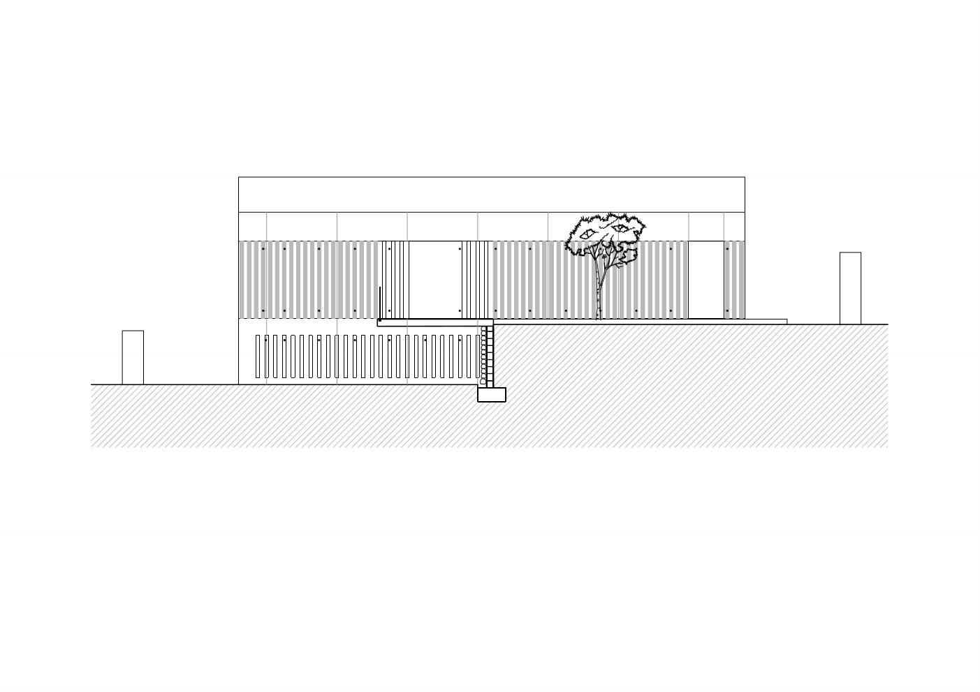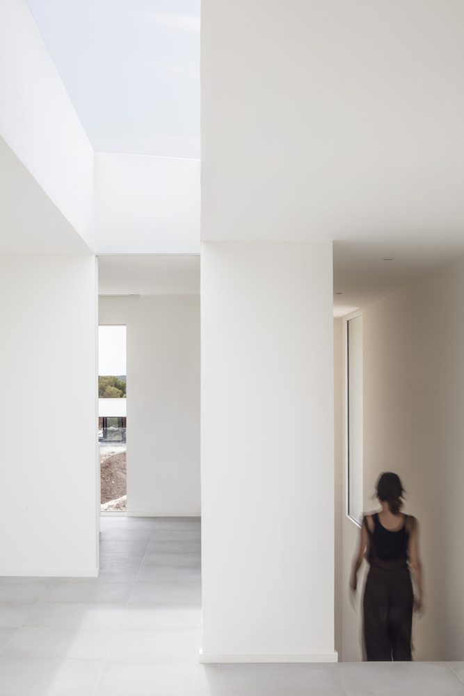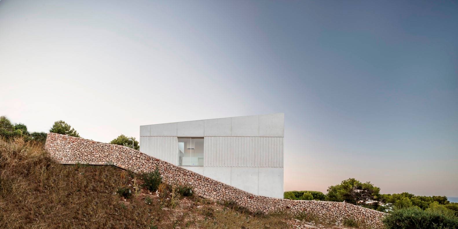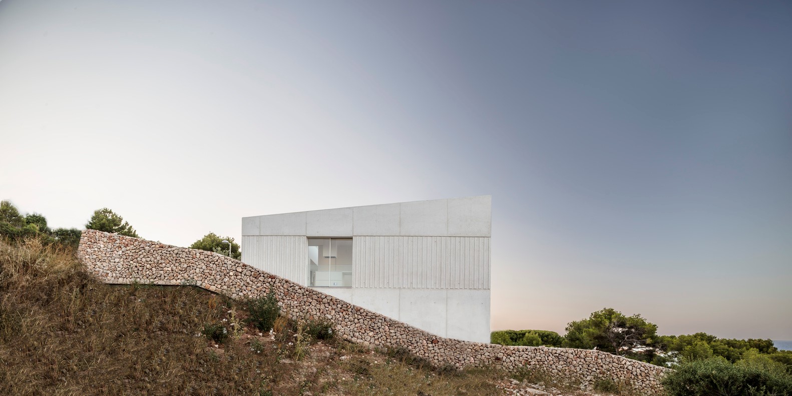外立面選用現(xiàn)澆混凝土作為零維護材料,混凝土在梅諾卡島的高濕度和極端鹽水平的侵蝕性氣候中會很好地隨歲月老化得愈加迷人。房子的灰白色立面與房子周圍的赭色和赤土色土壤融為一體。最后,立面上的垂直條紋浮雕帶圍繞著門窗,使建筑立面在視覺上得到統(tǒng)一。