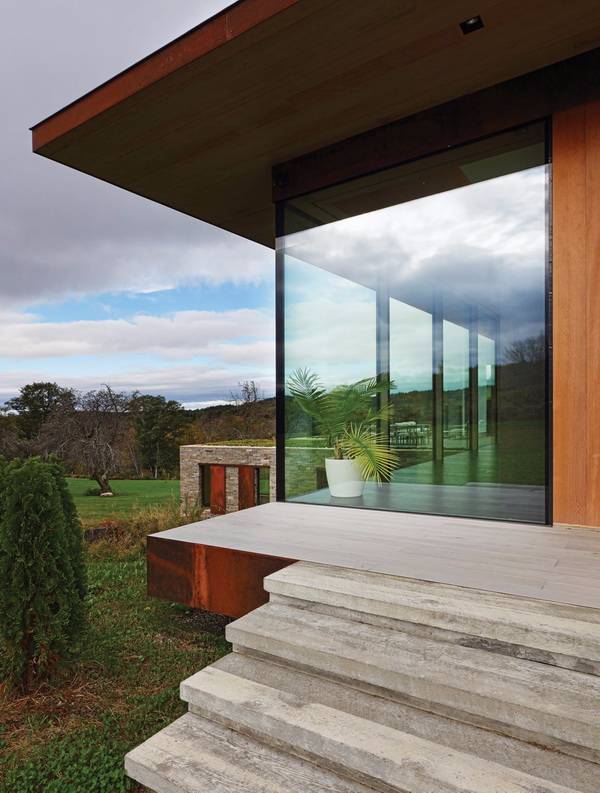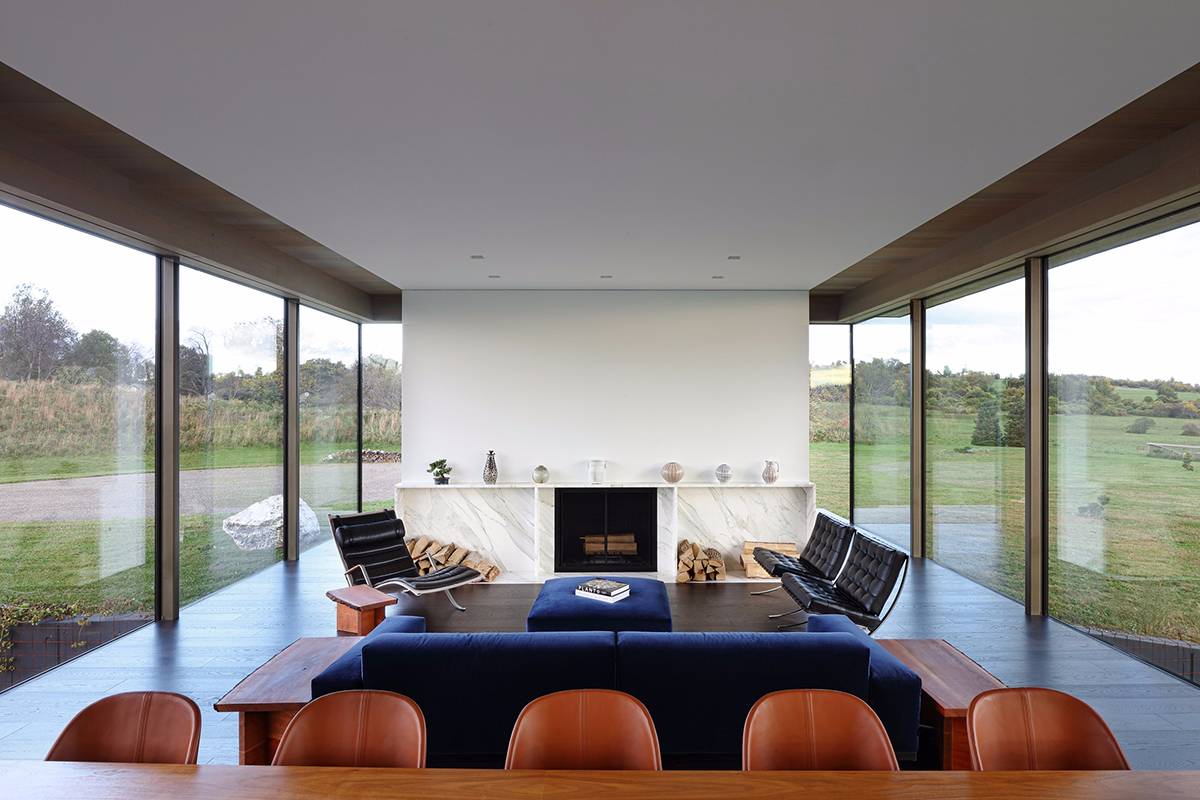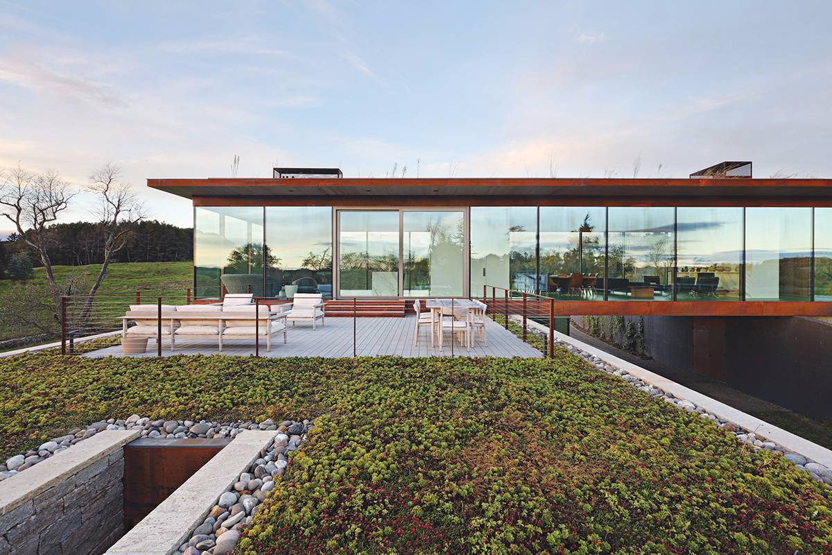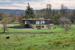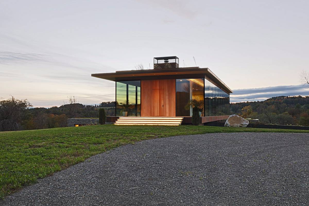 本次度假別墅位于紐約哈德遜谷內(nèi)一片生機(jī)盎然的有機(jī)農(nóng)場(chǎng)中,方案由美國建筑事務(wù)所Slade Architecture設(shè)計(jì)建造,業(yè)主是長期生活在城市中的居民,房子最大的特色是架在草丘和住宅樓露臺(tái)之間的懸空體量,由大面積的落地玻璃面和耐候鋼構(gòu)成。農(nóng)場(chǎng)小橋住宅位于紐約州北部的達(dá)奇斯縣,地處一片面積達(dá)220英畝(89公頃)的私人農(nóng)場(chǎng)中,田園風(fēng)情濃郁。該住宅周圍是一個(gè)有機(jī)農(nóng)場(chǎng),養(yǎng)殖有奶牛和其他牲畜,是業(yè)主方夫婦位于鄉(xiāng)下的房子,他們有三個(gè)孩子,平時(shí)大部分時(shí)間都居住在曼哈頓。