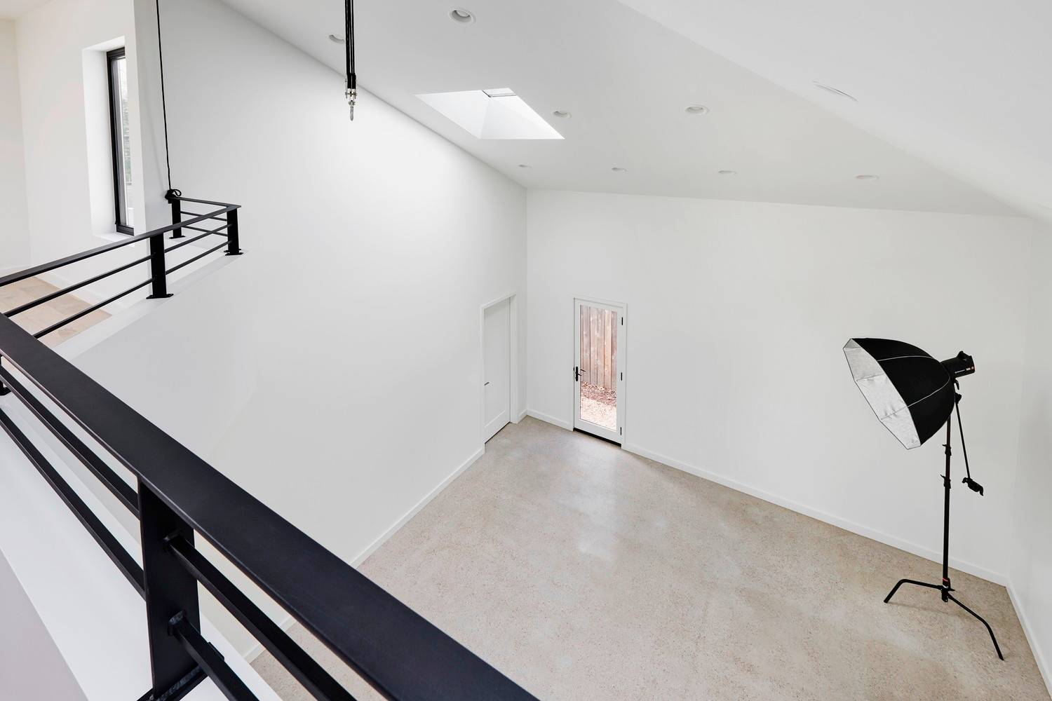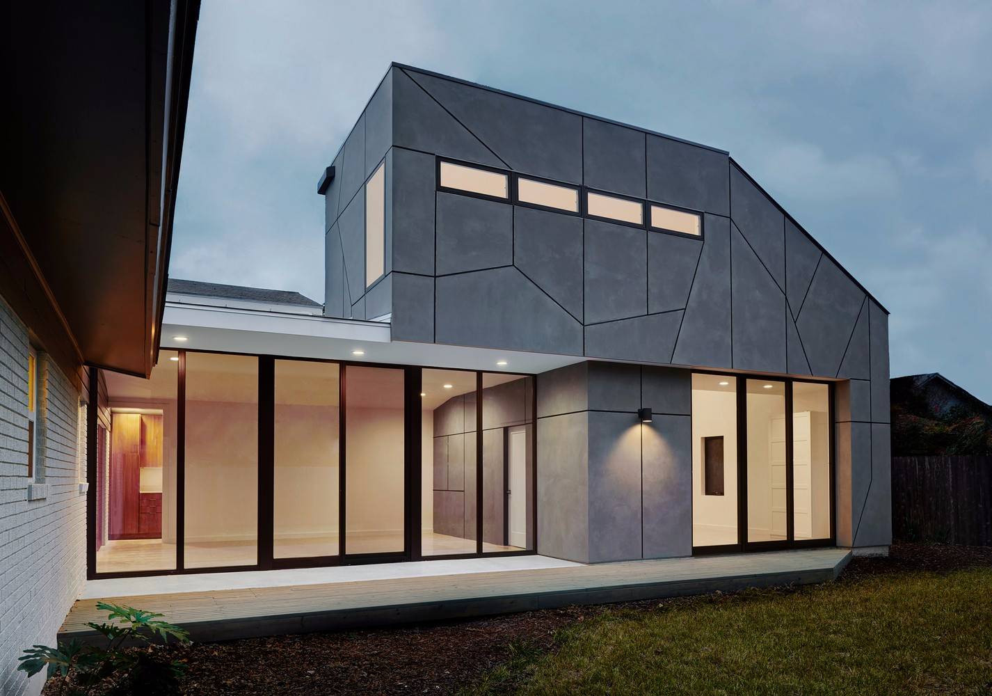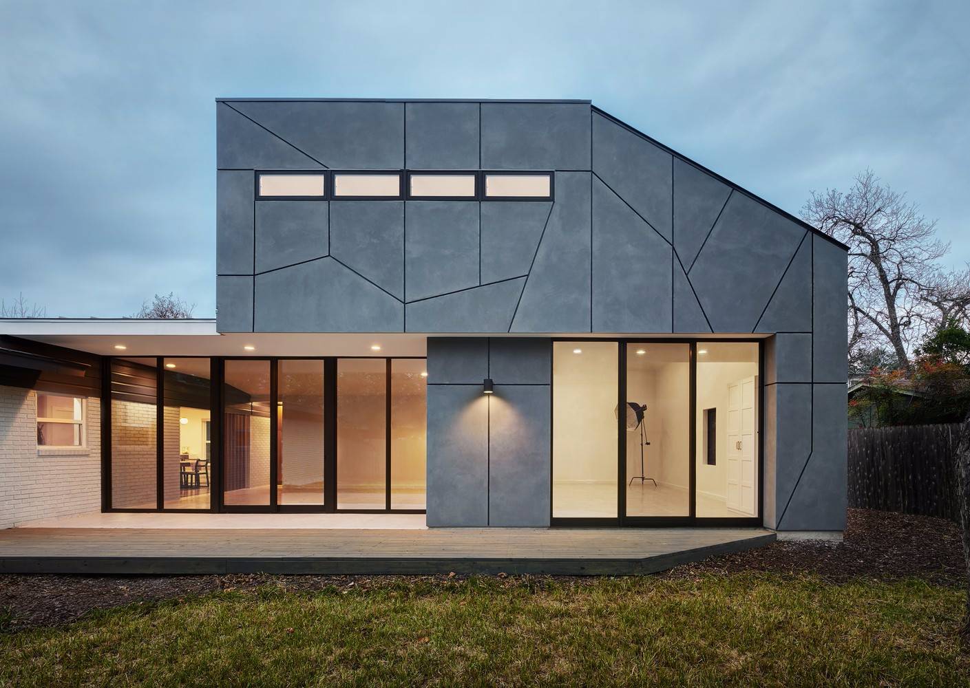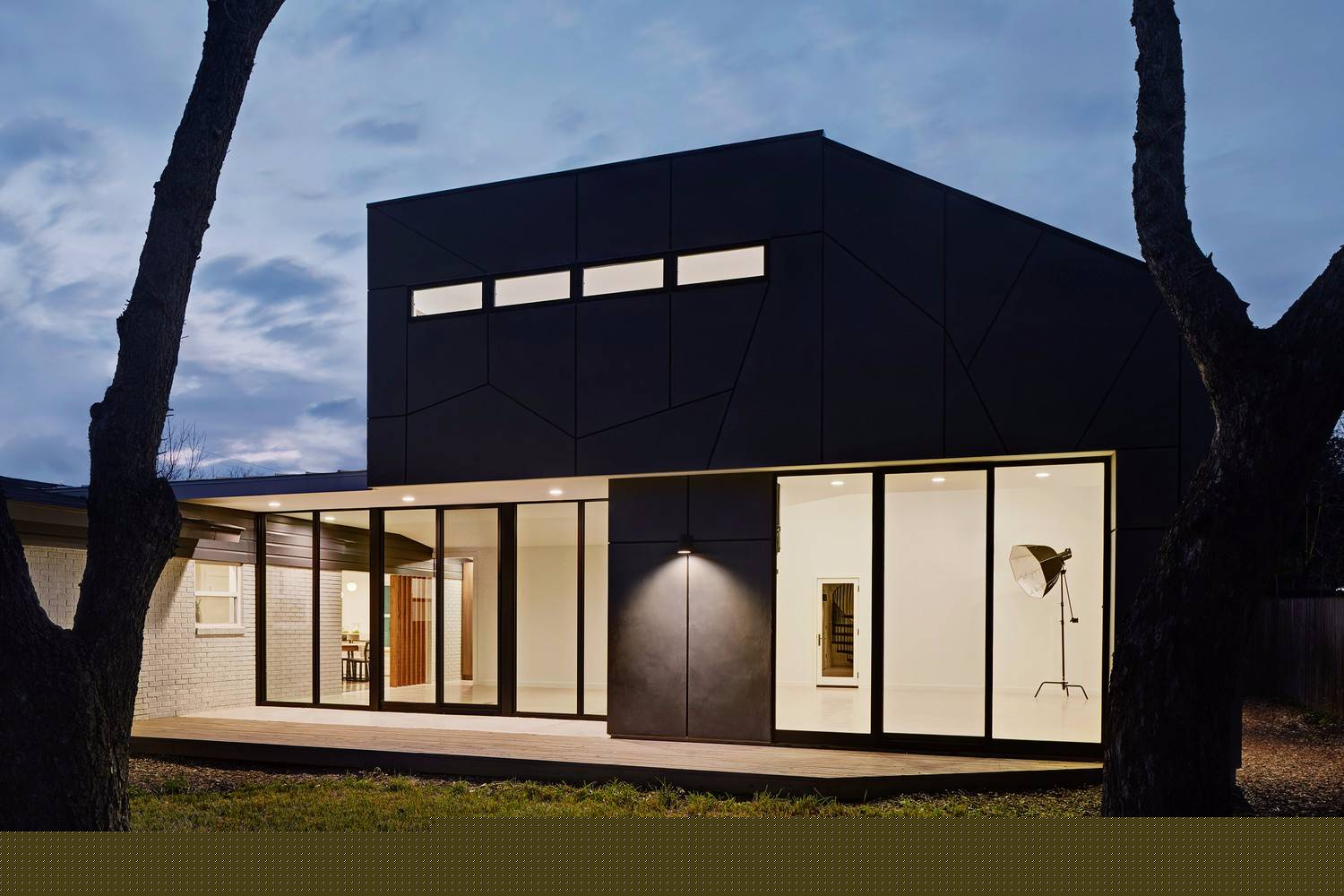 攝影師工作室的設計需要在寬敞的工作空間、奧斯汀市的地方條例規(guī)定和對富有表現(xiàn)力的形式之間取得平衡。這個項目起始于對攝影師對后院角落有一個工作室的簡單需求。地區(qū)規(guī)范的高度限制和樹木保護的規(guī)定很快就排除了建造單獨結構的選擇,導致只能在原油的建筑形式上增加,一個將典型奧斯汀房屋與新的形式并置的形式。