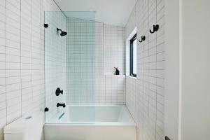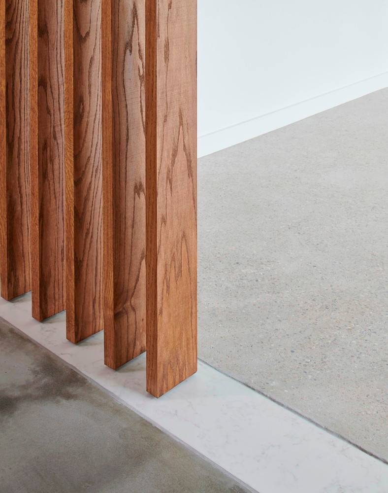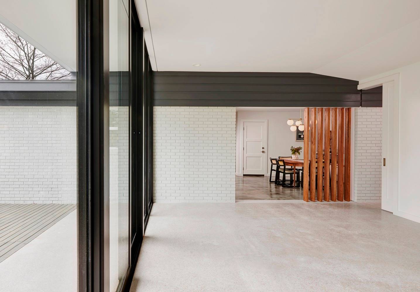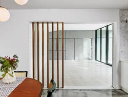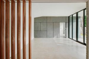 書房是一個明亮、自然過渡,將現(xiàn)有的餐廳與攝影工作室連接起來。木質(zhì)的屏幕漂浮在石頭門檻上,標志著原始房屋的范圍,同時增加了自然的色彩。為了最大限度地利用空間和功能的需要,一個新的洗衣房和完整的浴室被塞進書房的后墻。
