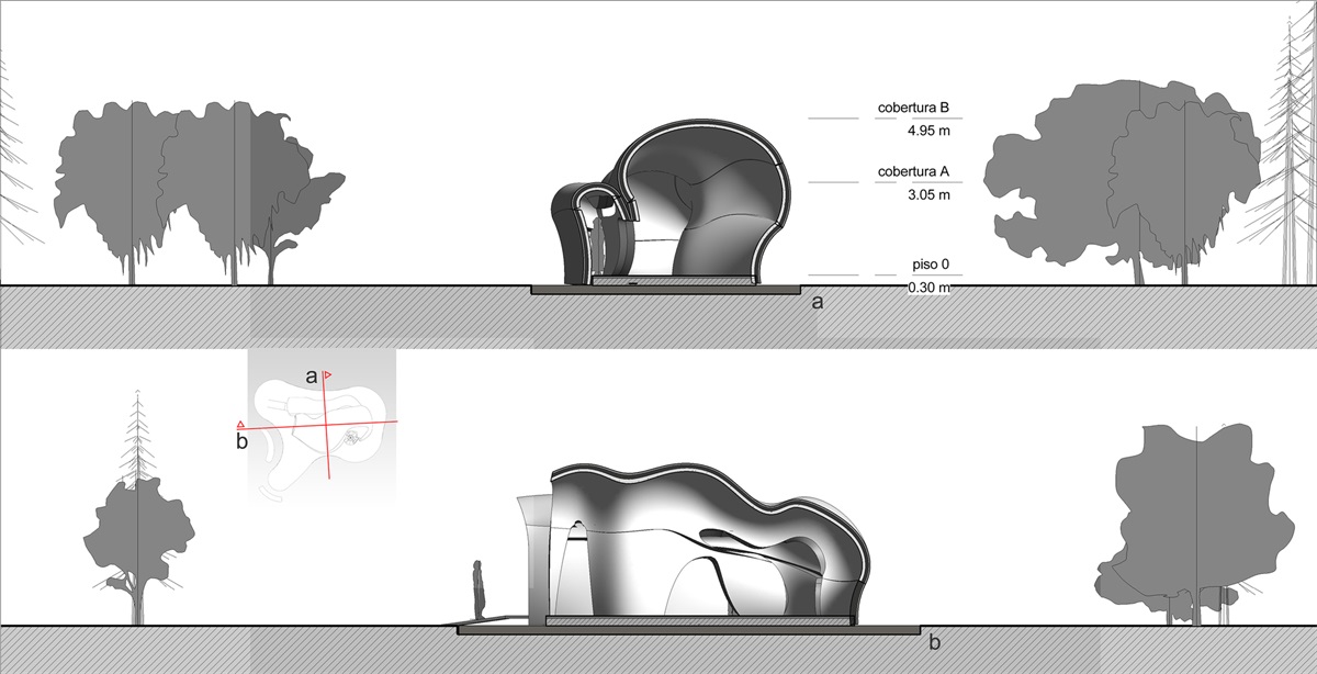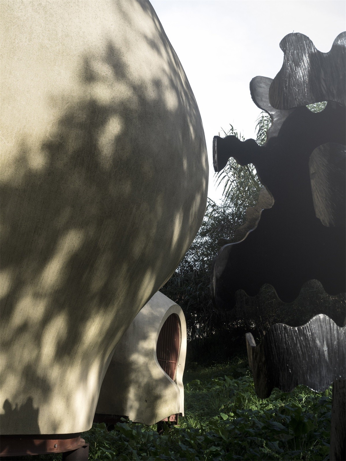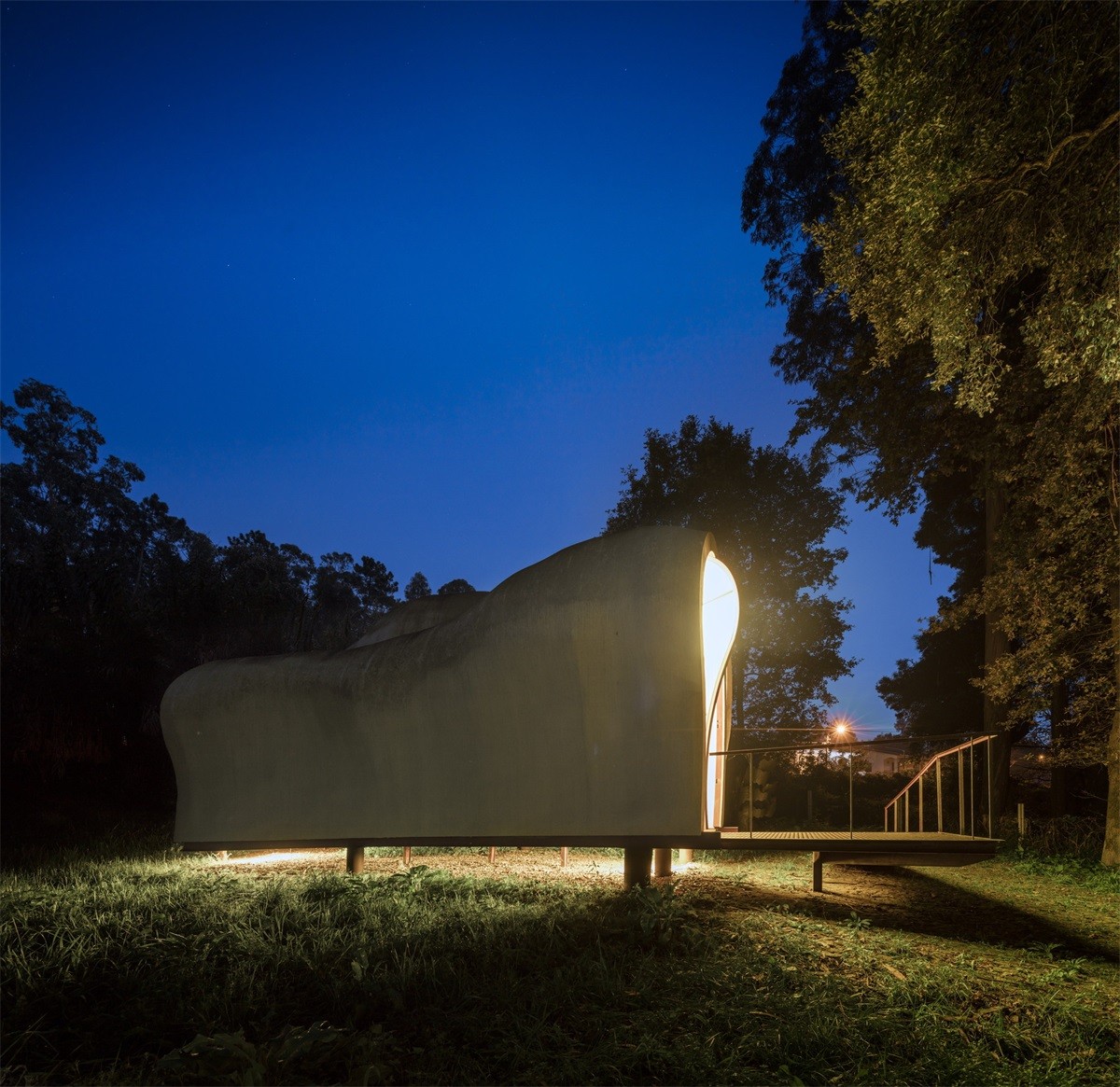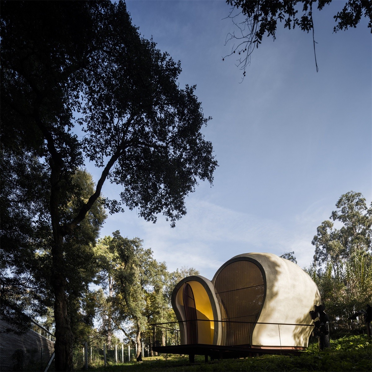 對于展覽空間的需求推動了“MATO藝術(shù)館”的出現(xiàn),它緊鄰雕塑家Paulo Neves的工作室。設(shè)計師從藝術(shù)家的雕塑作品本身中尋求創(chuàng)作靈感,有機(jī)的建筑形式巧妙的反映了Paulo Neves雕塑的精神特質(zhì)。整個建筑沒有平直的表面。仿佛一個出生在這里的奇怪動物,隱蔽在周圍的植被中。