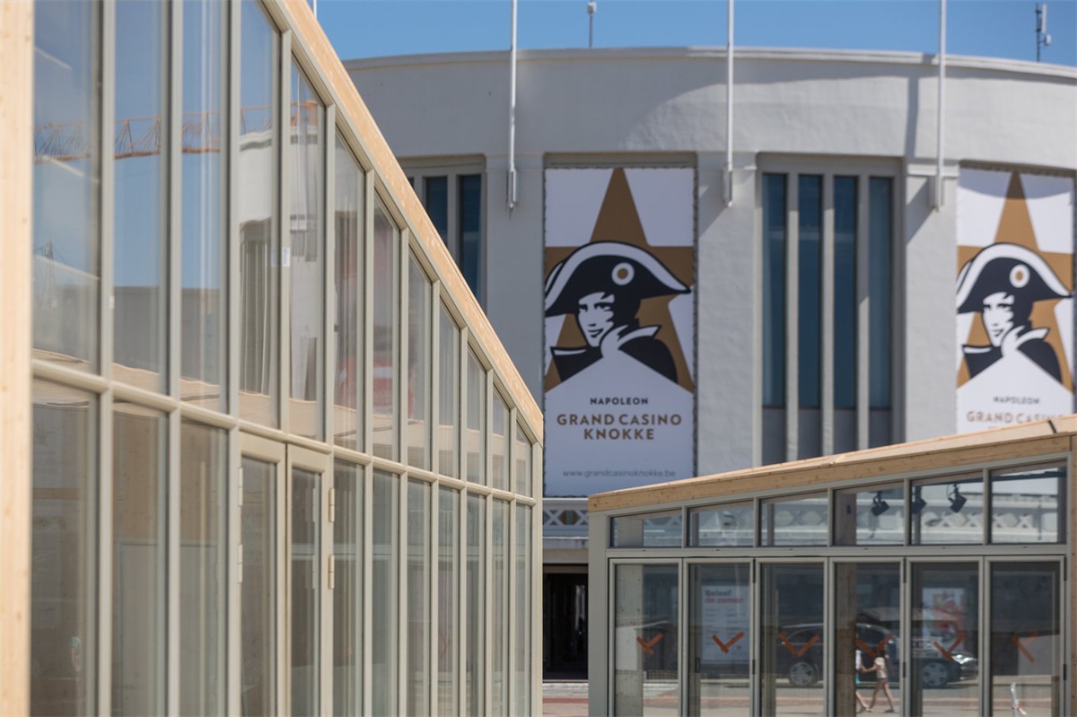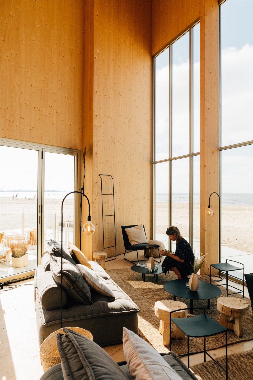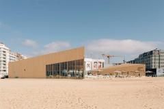 為了在Knokke的海灘上實現(xiàn)一個臨時的藝術(shù)和活動地點,兩個巨大的CLT板木結(jié)構(gòu)(交叉疊層木材)被雕塑設(shè)計來交付所要求的項目元素:活動/藝術(shù)博覽會和酒吧/餐廳。
