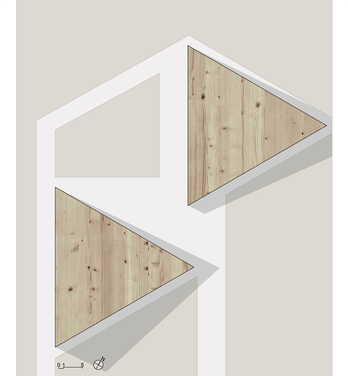 CLT結(jié)構(gòu)是自然加工的。地板、墻壁和屋頂展示了它們的木質(zhì)表面,因此室內(nèi)和建筑圍護結(jié)構(gòu)之間沒有區(qū)別。立面開口遵循功能,在需要隱私的地方關(guān)閉,并打開以獲得全景。